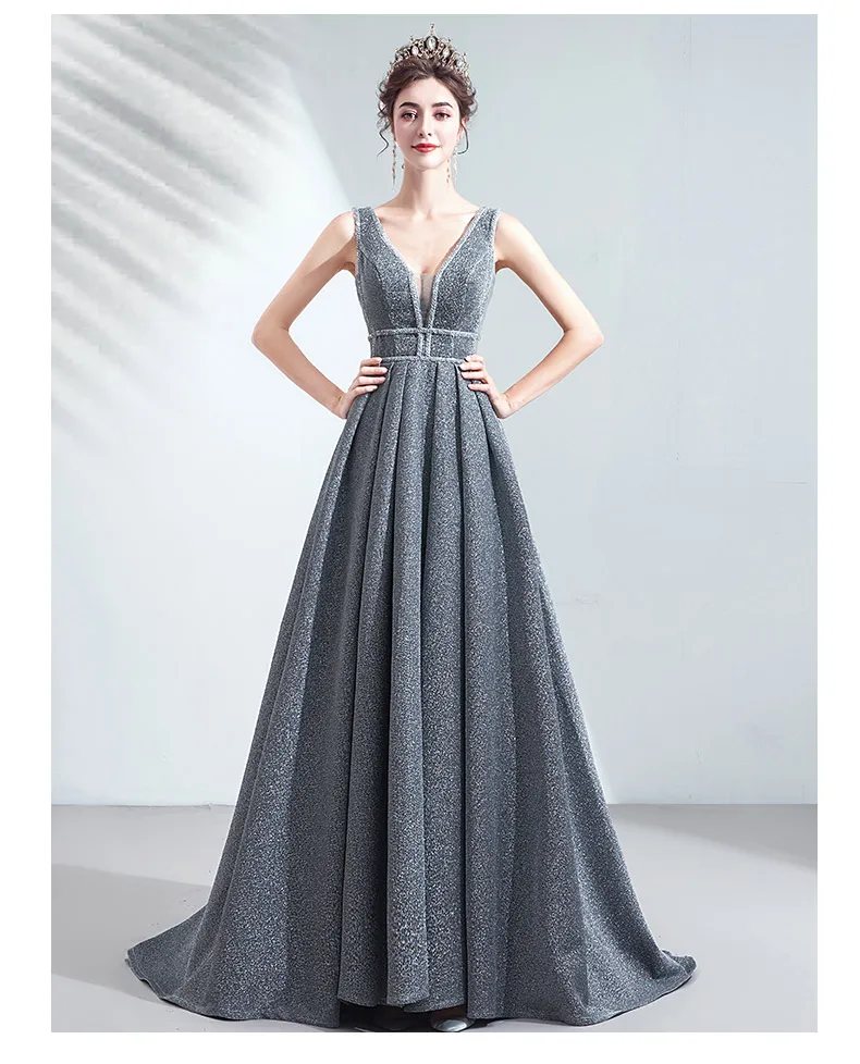 Женское вечернее платье с v образным вырезом NOBLE WEISS из тюля кристаллами и