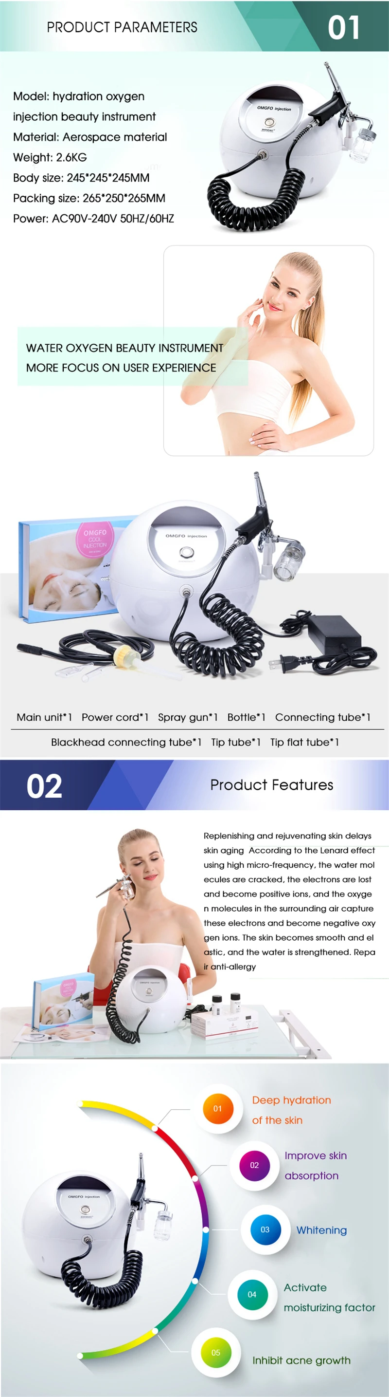 B. Деликатный впрыск кислорода: запатентованный кислородный инъекционный аппарат для кожи способен обрабатывать кожный прурит, чувствительную кожу, нейродерматит, контактный дерматит и экзему кислородом в виде распыления и активных концентрированных ингредиентов. Акне, солнечные лучи, особенно подходит для косметической хирургии, лазерного лечения, лечения акне и глубокой кожи после лечения. Впрыска кислорода кожа может одновременно или самостоятельно распылить чистый кислород/кислородный раствор эссенции.