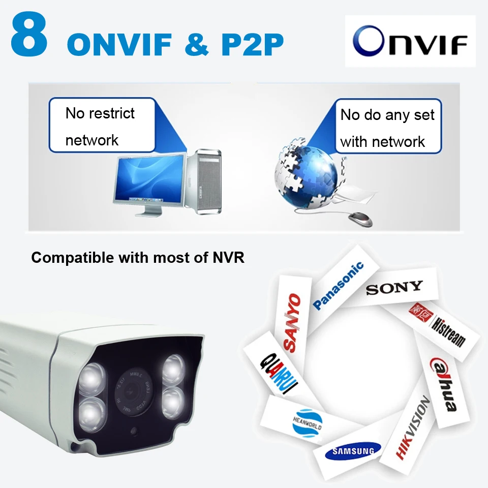 Белый светильник светодиодный: 4 шт. белый светильник светодиодный с 0-35 м ИК-расстоянием Материал: металл, работает как внутри, так и снаружи 1. Поддерживает мобильный телефон: Andorid, iphone 2. Встроенный IR-Cut daul фильтр 3. Поддержка Onvif и XMeye 4. Поддержка CMS и пульт дистанционного управления 5. Поддержка обнаружения движения 6. Поддержка отключения питания Автоматический перезапуск и случайная ошибка автоматический перезапуск 7. Поддержка просмотра сети, мобильный телефон 8. Поддержка использования на Windows 8/Windows 7/Windows XP/Windows 2003 9. Можете запомнить ваши последние настройки, когда повторите, не нужно устанавливать снова Поддержка протокола ONVIF. 1080P дополнительно Размер объектива: по умолчанию: 6 мм Стандарт сжатия: Поддержка H.264 + и H.265, Половина памяти, чем другие камеры, больше экономит ваше пространство, ваш лучший выбор! Технические характеристики: Структура системы: Встроенный RTOS, двухъядерный 32 бит DSP( Hi3518EV200 ), чистое жесткое сжатие Сенсор: 2,0 м 1/2.7 "F22 CMOS сенсор; Цвет 0.1Lux F1.2, черный/белый 0.01Lux F1.2 Сжатие видео: H.265, поддержка двойного потока, AVI; 0,1 M ~ 8Mpbs переменная; 1 ~ 30f/s переменная Изображения: 2,0 м 1920*1080; Шумоподавление: Поддержка 2D/3D Широкий динамический: поддержка цифрового Сетевой интерфейс: 1 * RJ45 10/100 м адаптивный Ethernet порт; Поддержка RTSP/FTP/PPPOE/DHCP/DDNS/NTP/UPnP и т. д Одиночный интерфейс: один интерфейс сопротивления фото, один интерфейс IR-CUT, поддержка сигнала сопротивления фото и IR-CUT ссылки на ИК С автоматической диафрагмой: нет SD карта: неподдержки Другие функции: поддержка OSD, Поддержка обнаружения движения, оповещения по электронной почте/FTP и так далее ONVIF: Поддержка Мобильный Мониторинг Поддержка нескольких мобильных мониторинга (iOS,Android) Примечание: продукт не включает адаптер питания и кронштейн, пожалуйста, приобретайте отдельно от моего магазина, если вам это нужно.