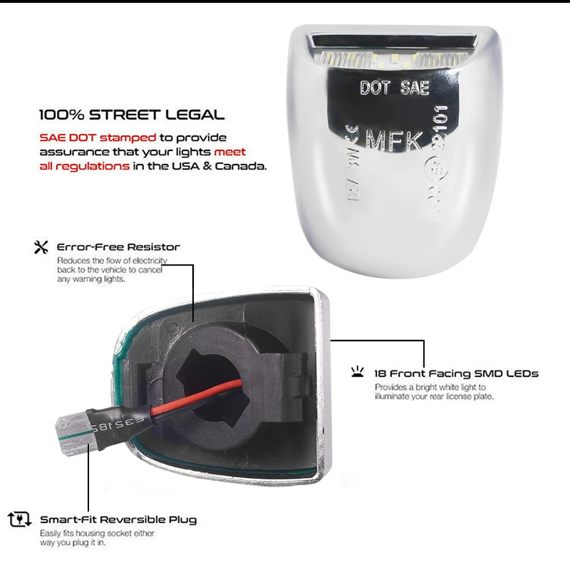 В этом списке есть 1 шт. полный светодиодный, питание от 18 шт. супер яркие ксеноновые светодиоды белого свечения светодиодный диоды с мощностью 3 Вт, чтобы создать превосходный светильник на выходе. Роскошный хромированный серебристый цвет Непосредственно заменяет и обновляет Заводской Оригинальный Корпус/объектив номерного знака и 168 194 или 6418 C5W светильник внутри Подходит для Cadillac Escalade Chevy Avalanche Silverado Suburban Tahoe GMC Sierra Yukon (пожалуйста, обратитесь к списку моделей) Установка проста; Вы можете непосредственно заменить ваши OEM огни лицензии. Это совершенно новая пара ксенон белый светодиодный номерной знак света придадут вашему автомобиля задний номерной знак мощным прожектором-идеальный вариант для создания образа в стиле внешний вид и высокая видимость! Примечание: один автомобиль должен установить 2 шт.