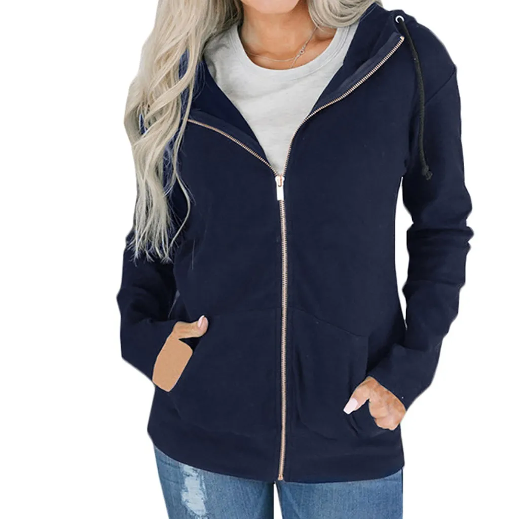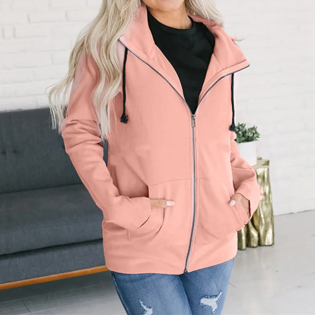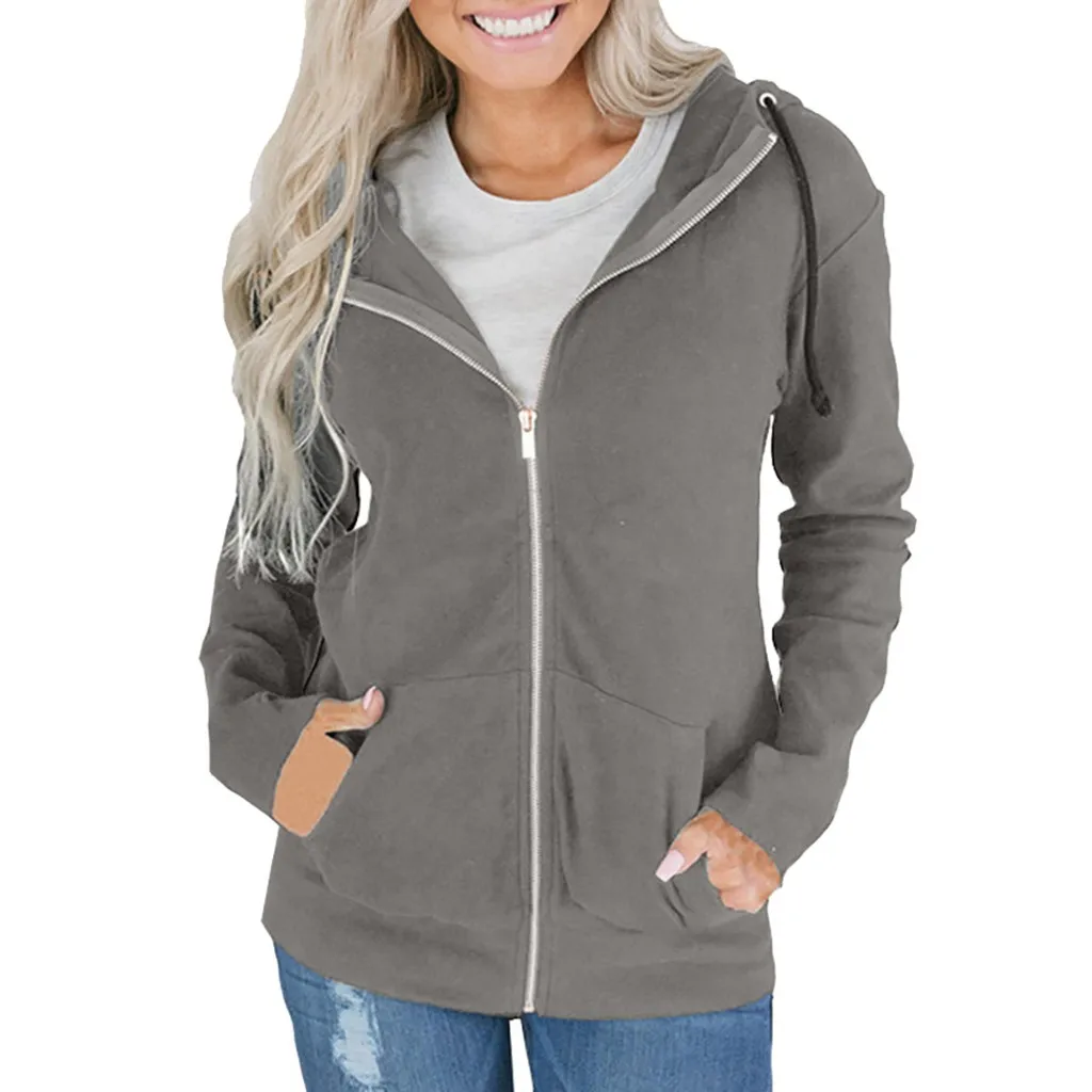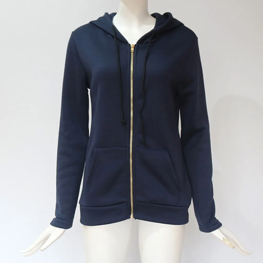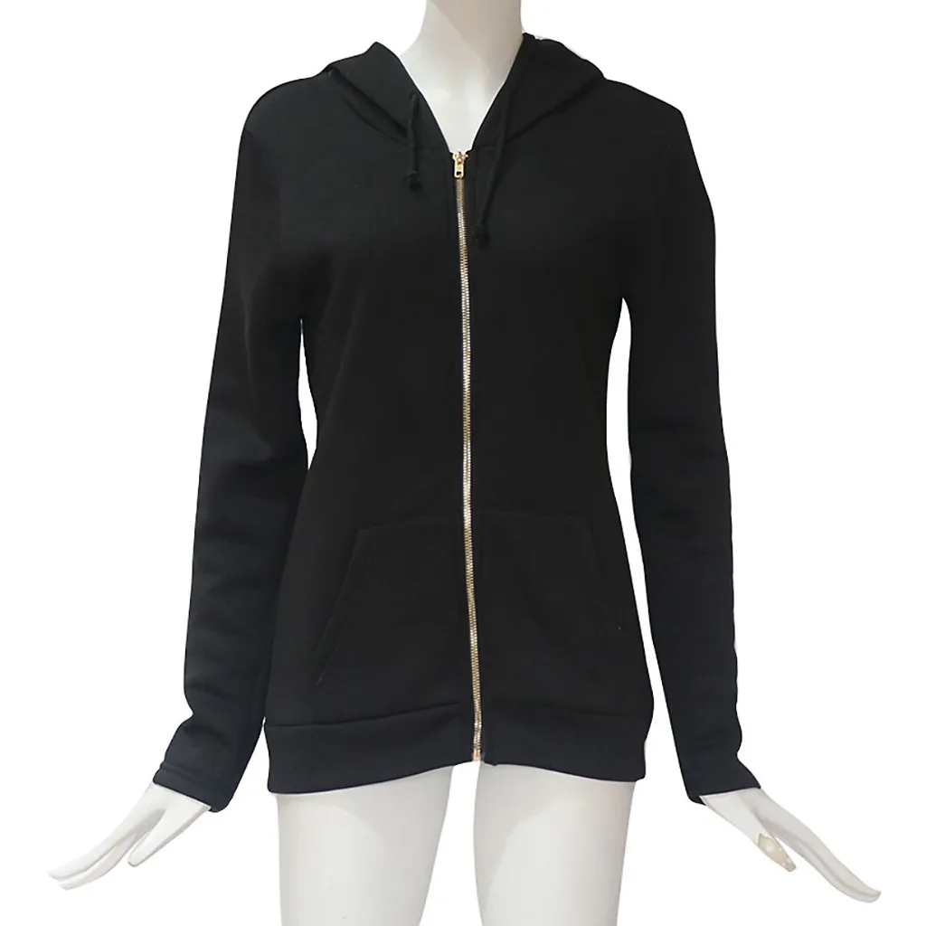 Модная женская толстовка на молнии с длинным рукавом, пальто, верхняя одежда, куртка с капюшоном, пальто