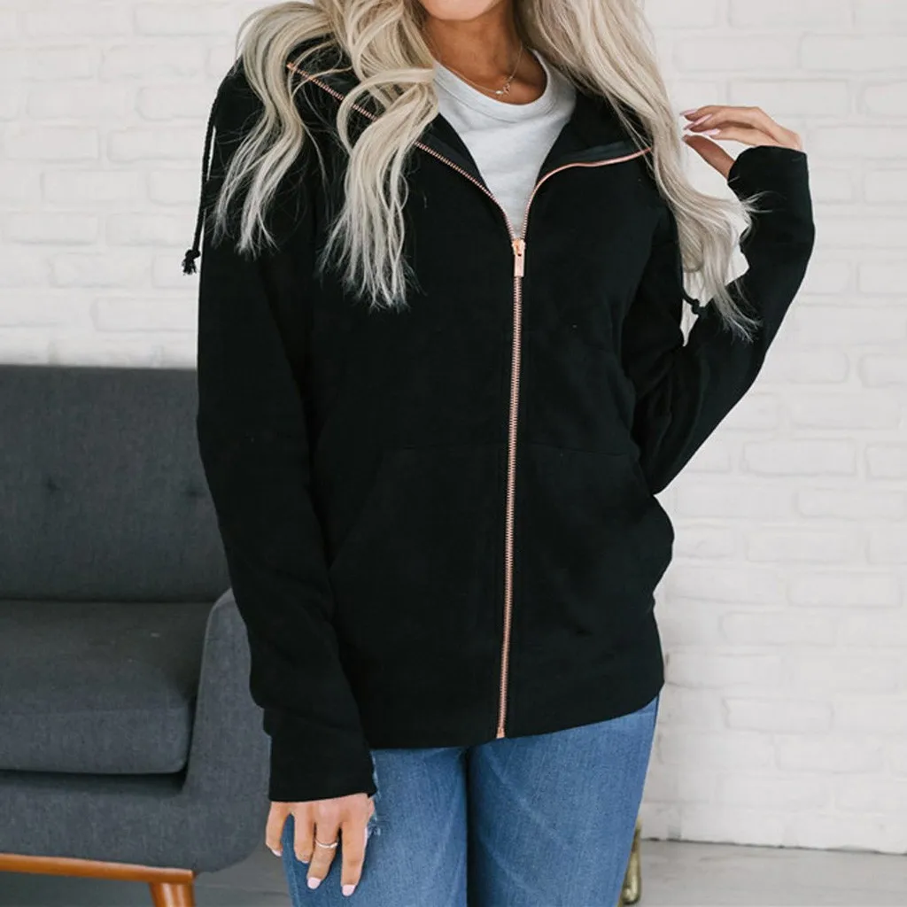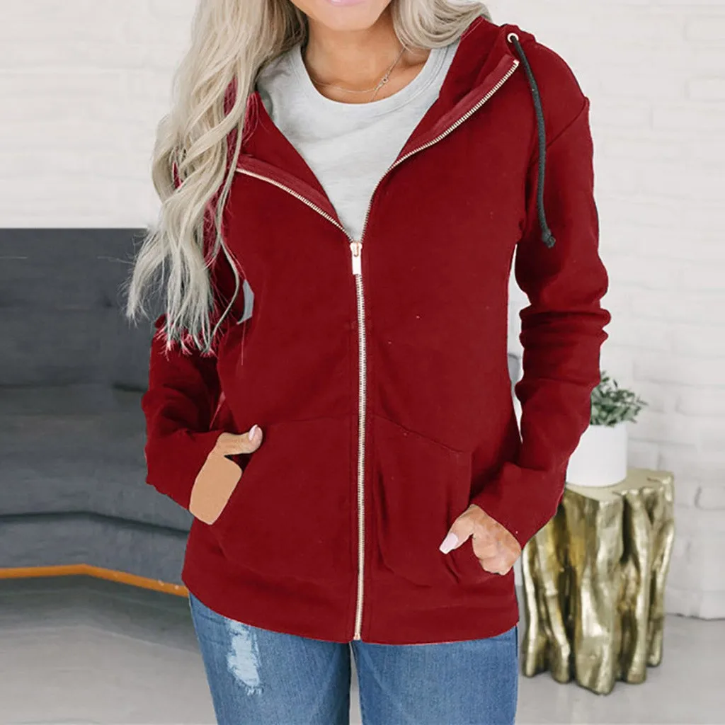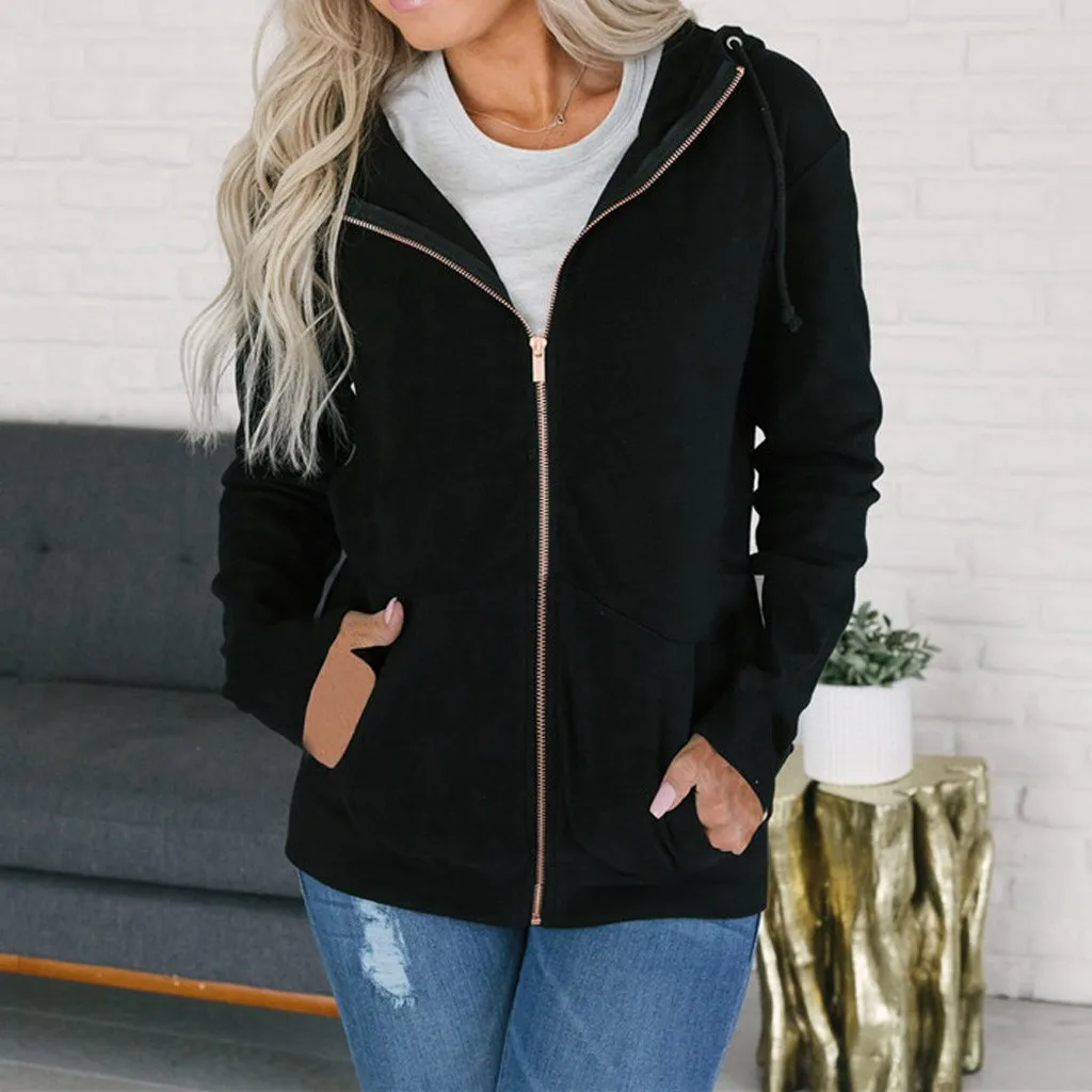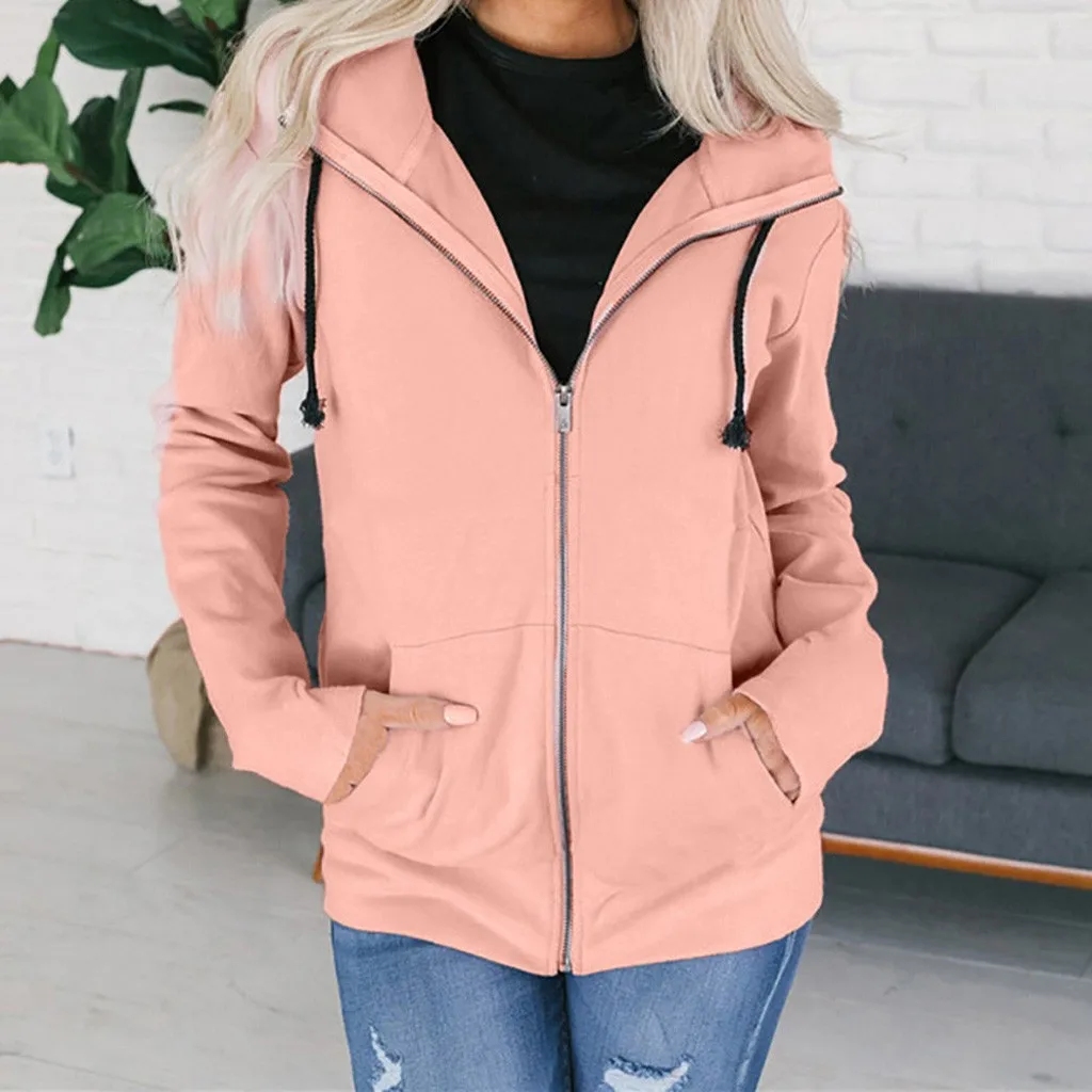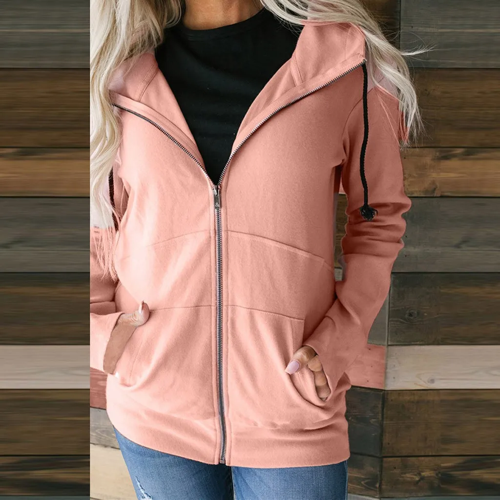 Модная женская толстовка на молнии с длинным рукавом, пальто, верхняя одежда, куртка с капюшоном, пальто