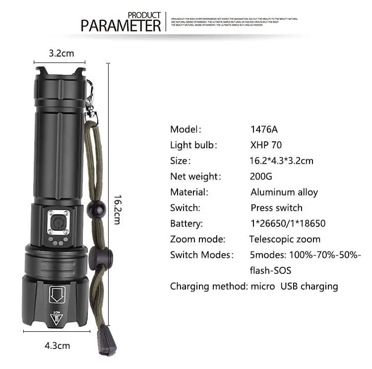 Аккумулятор: 1*26650/1*18650 (за исключением) 3AAA также может быть использован