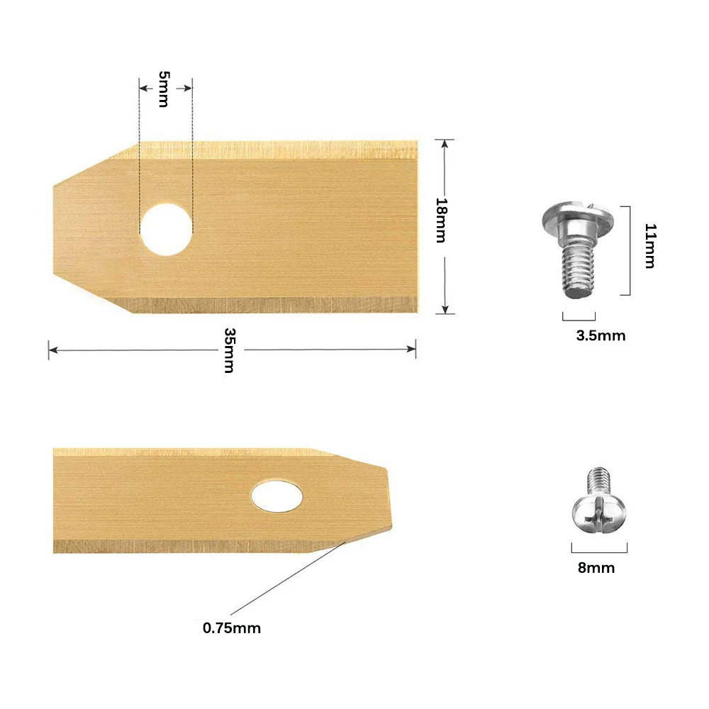 Лезвие робота-газона с титановым покрытием не только имеет холодный золотой цвет, но и имеет более длительный срок службы и износостойкость. Лезвие робота-газона имеет более прочную, более гладкую поверхность, лучшие возможности защиты от накипи и улучшенную изоляционную функцию, что обеспечивает вам лучшее использование.