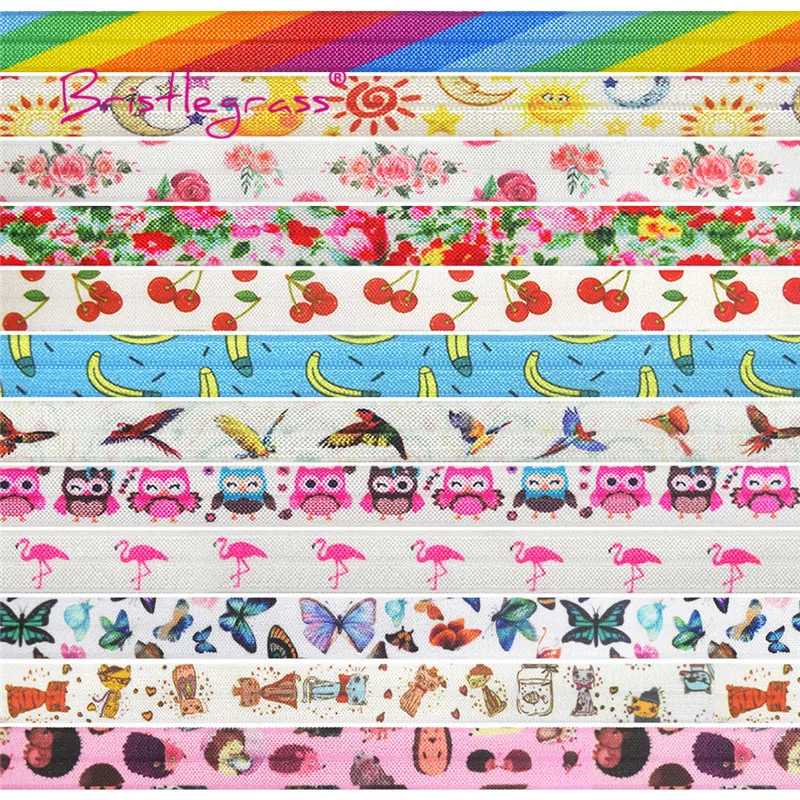 BRISTLEGRASS 100 ярдов в рулоне 5/8 "15 мм Сова Фламинго леопардовая Роза цветочный принт складывается поверх резинок враг повязка из спандекса платье Шитье