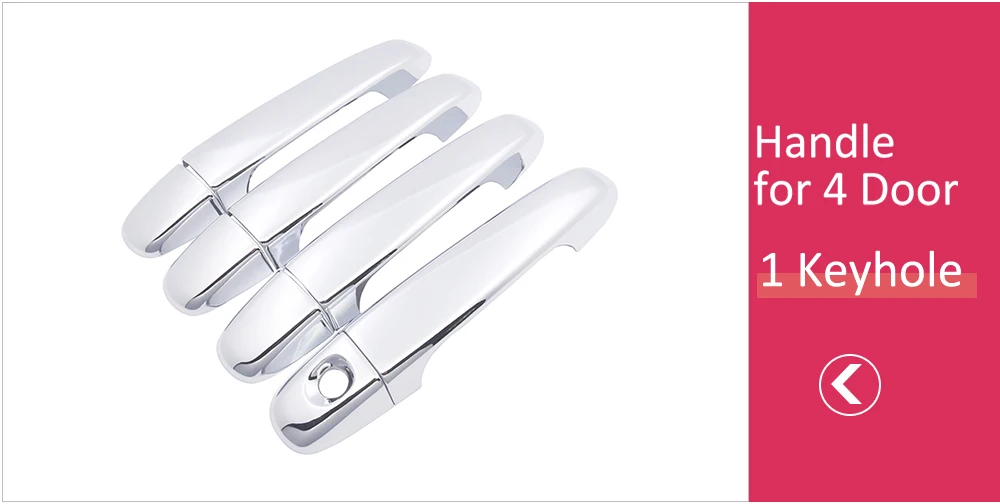 Сделайте свой автомобиль выделиться из толпы с помощью этих 4 высококачественных стильных хромированные покрытия для дверных ручек! Высококачественный пластик придает этим чехлам глубокий и глянцевый хромированный блеск! Они специально разработаны для вышеперечисленных моделей и идеально подходят! Они оснащены высокой прочности лента 3M клейкого материала на задней части, просто снимите пленку с подкладкой и нанесите! Занимает несколько секунд, никаких инструментов не требуется! Это действительно придаст вашему автомобилю крутой новый вид!