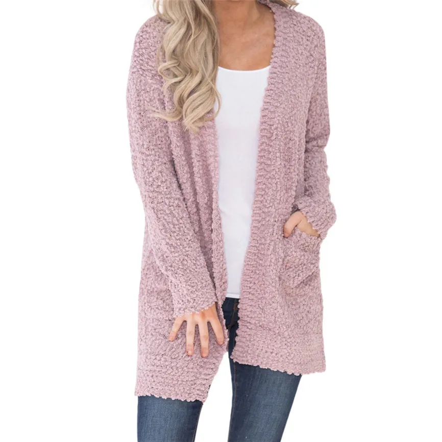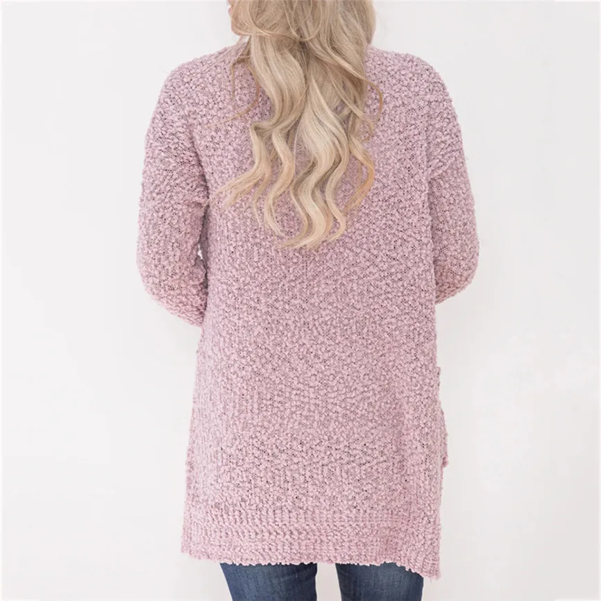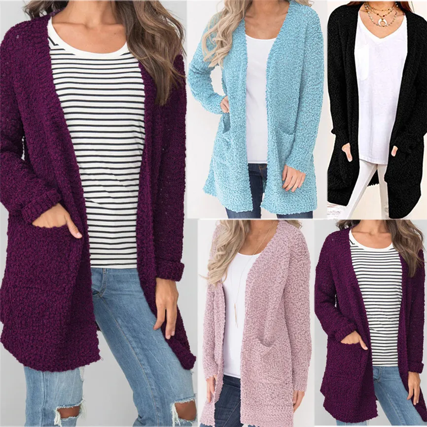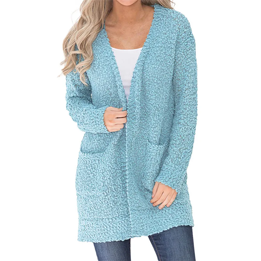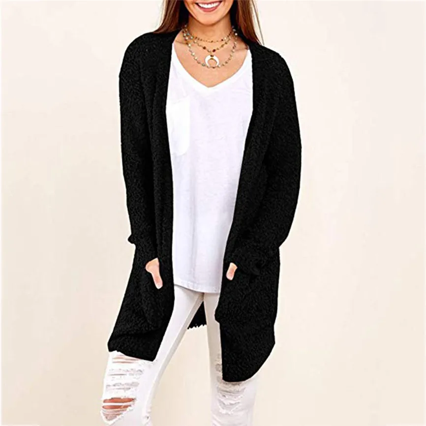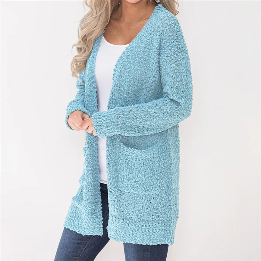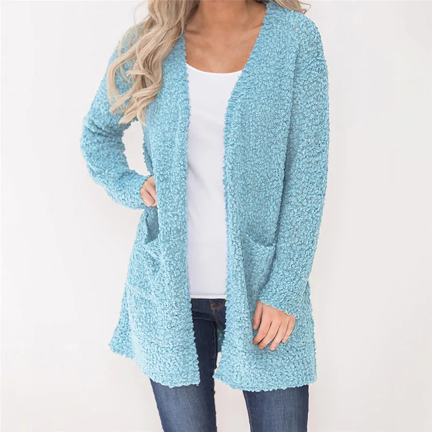 Женский Повседневный свитер, однотонный зимний теплый шерстяной кардиган с карманами, верхняя одежда