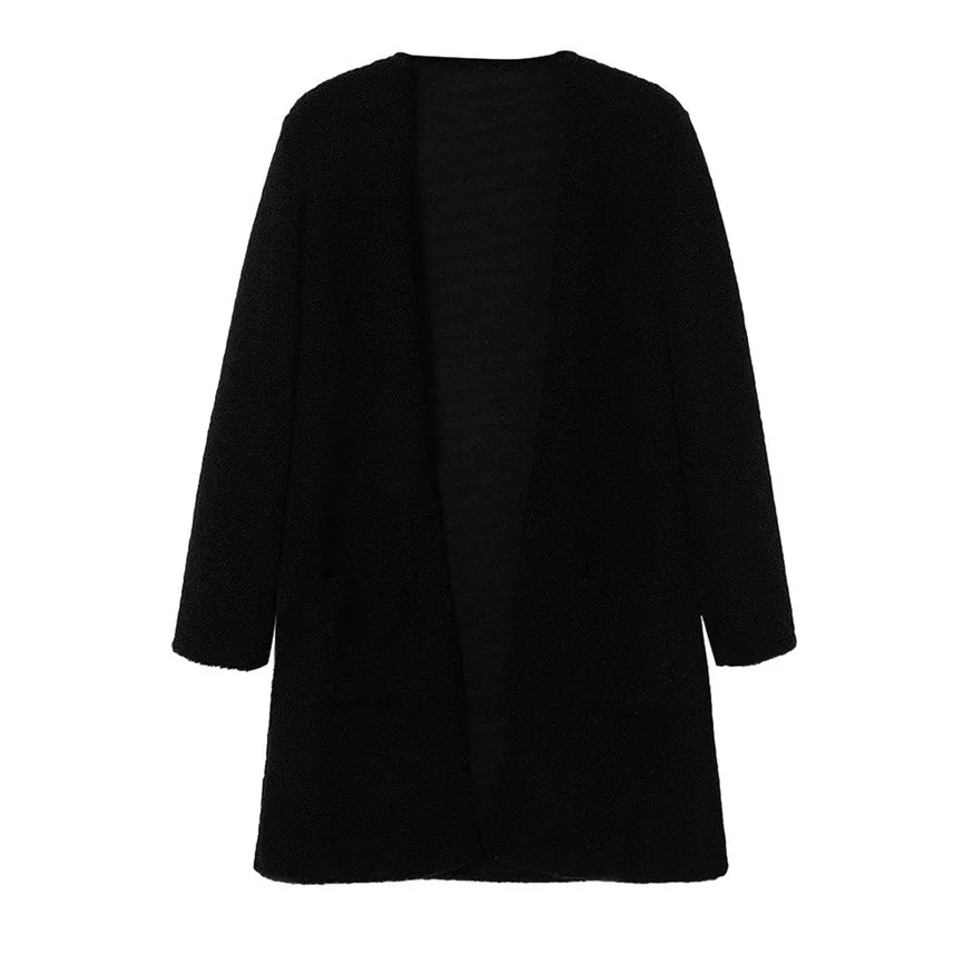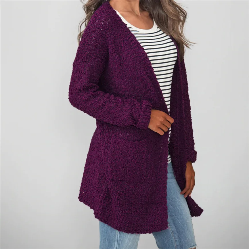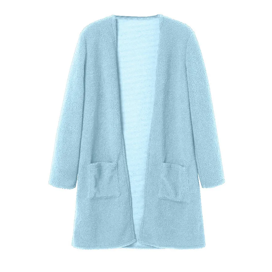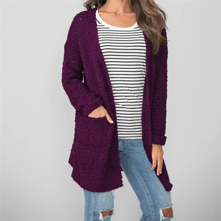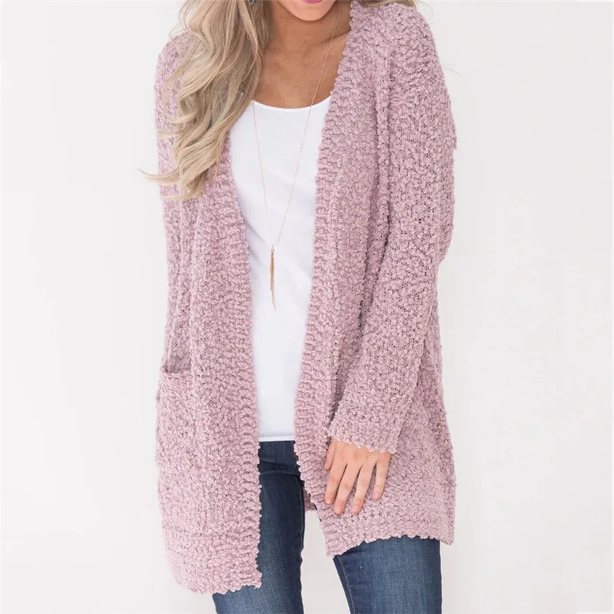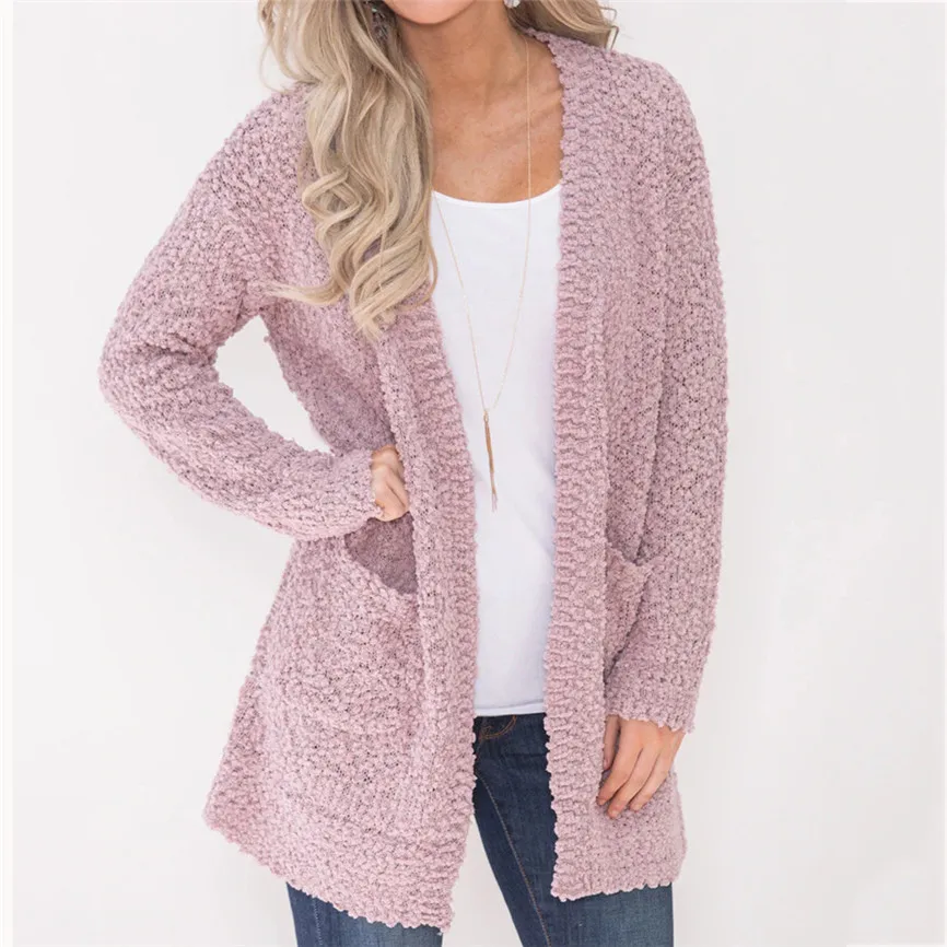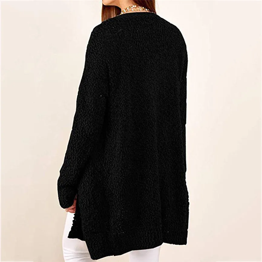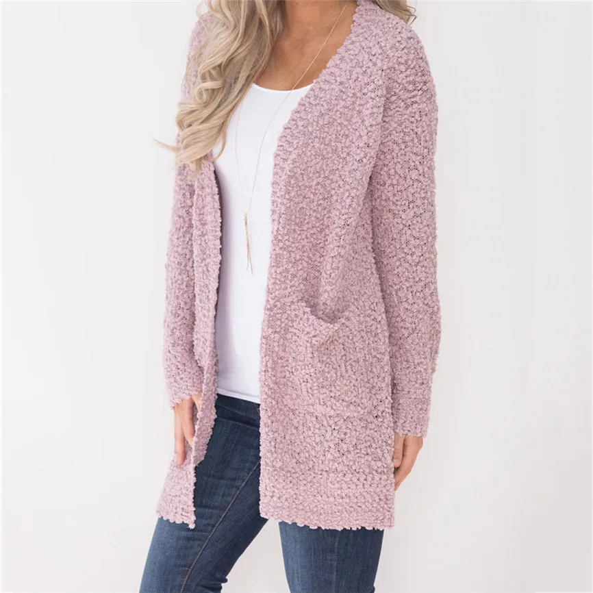 Женский Повседневный свитер, однотонный зимний теплый шерстяной кардиган с карманами, верхняя одежда
