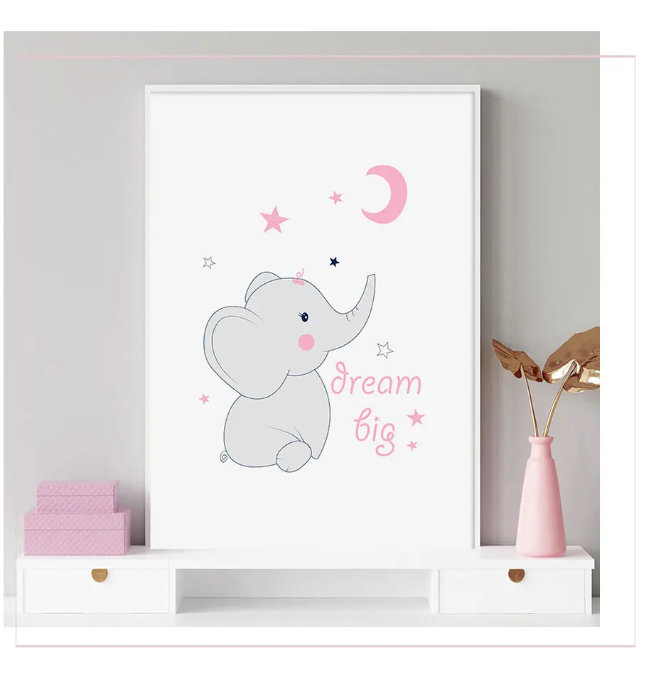 Розовый милый слон мечта Большой Декор детской комнаты холст картина стены искусства плакаты печать и картина подарок детский Декор интерьера