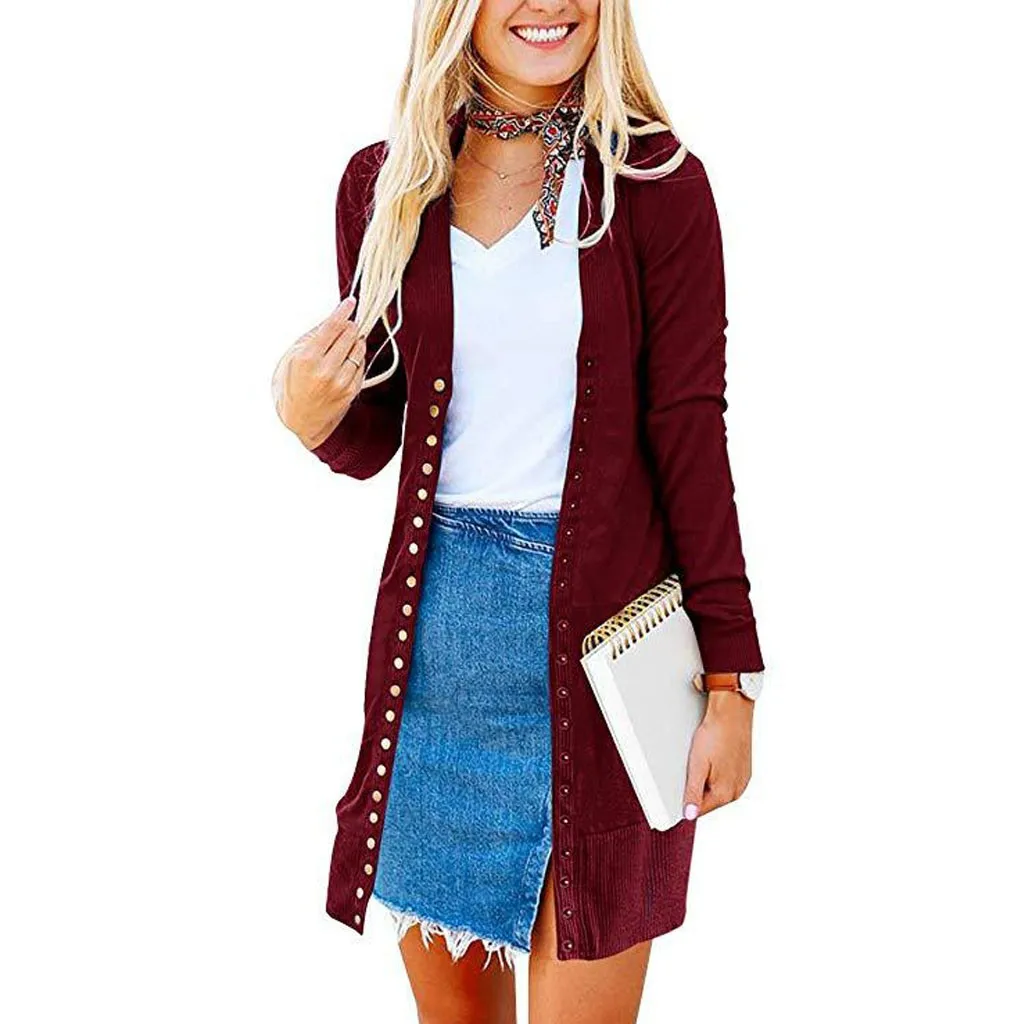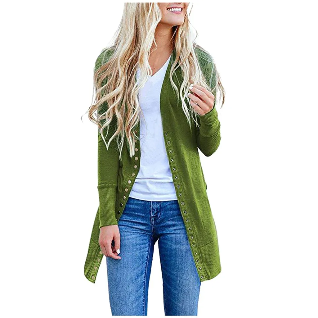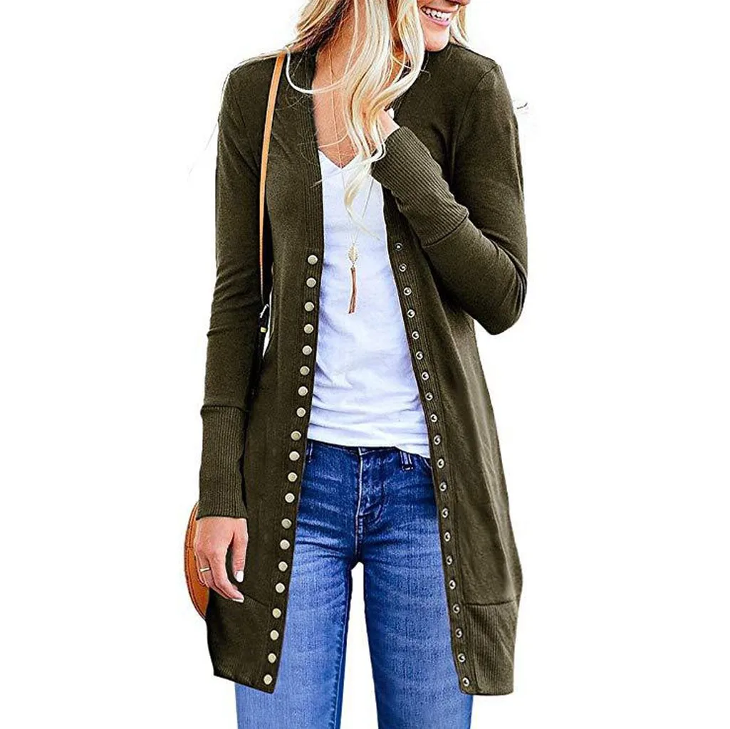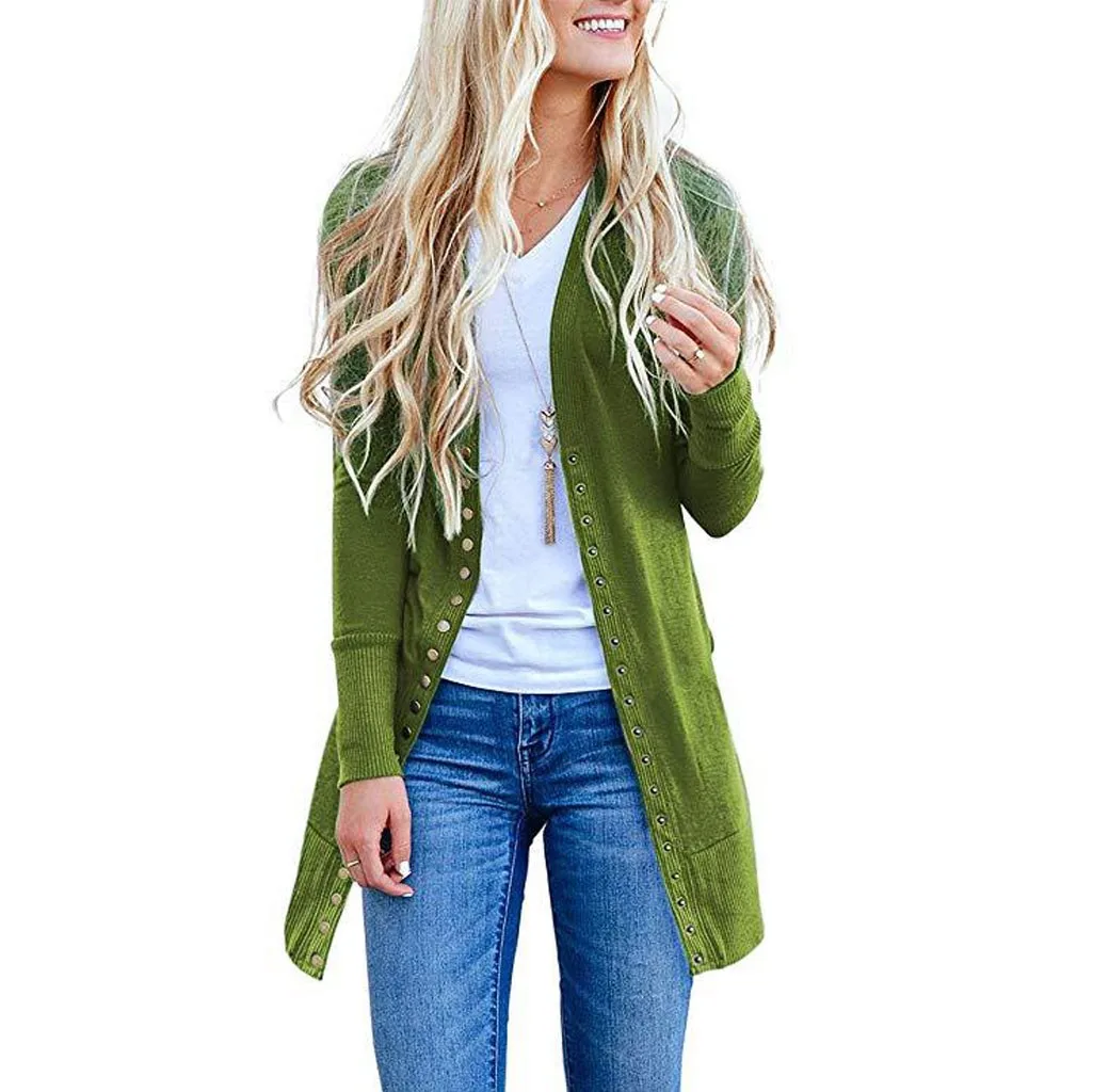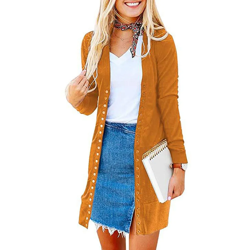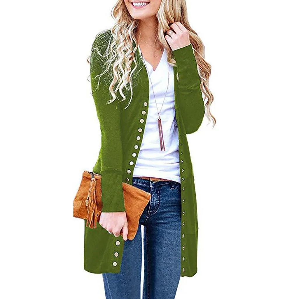 Женский модный однотонный кардиган на пуговицах с длинными рукавами, свободная вязаная куртка, пальто