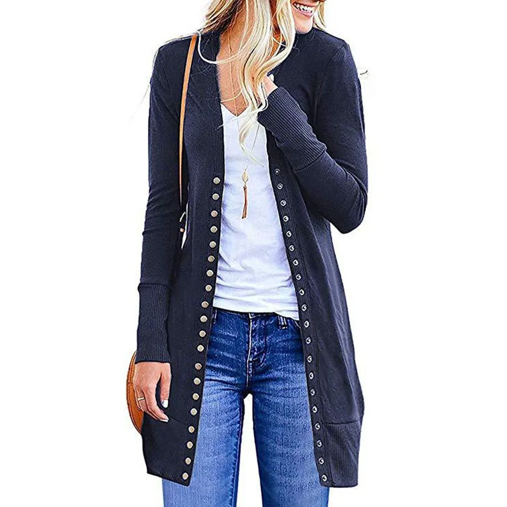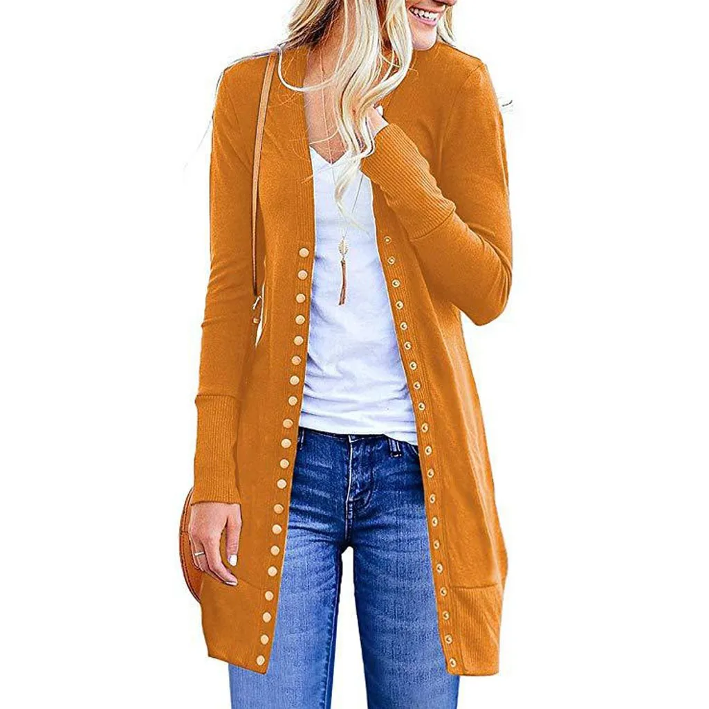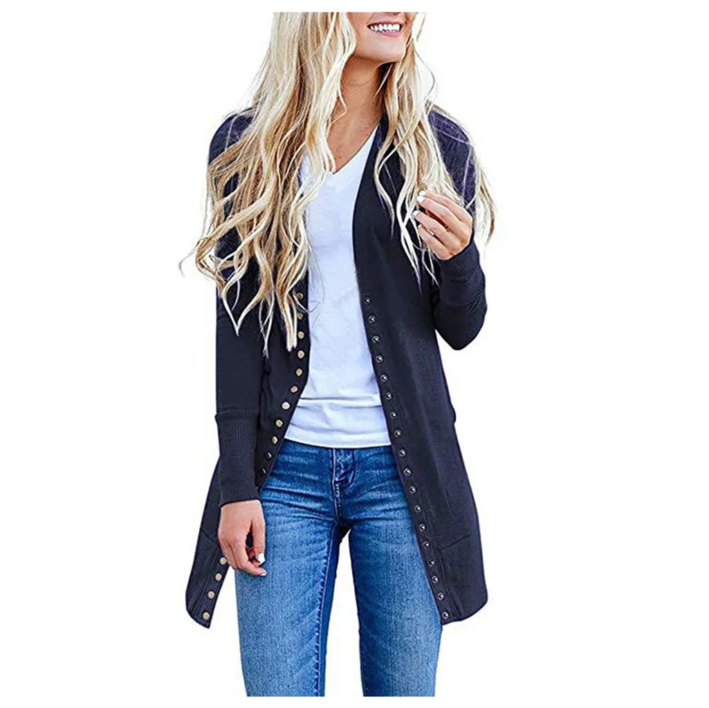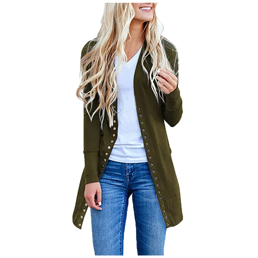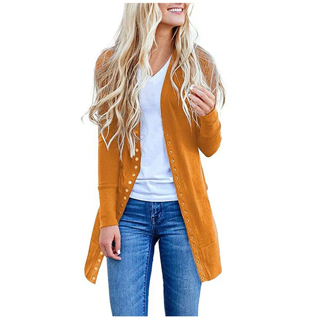 Женский модный однотонный кардиган на пуговицах с длинными рукавами, свободная вязаная куртка, пальто