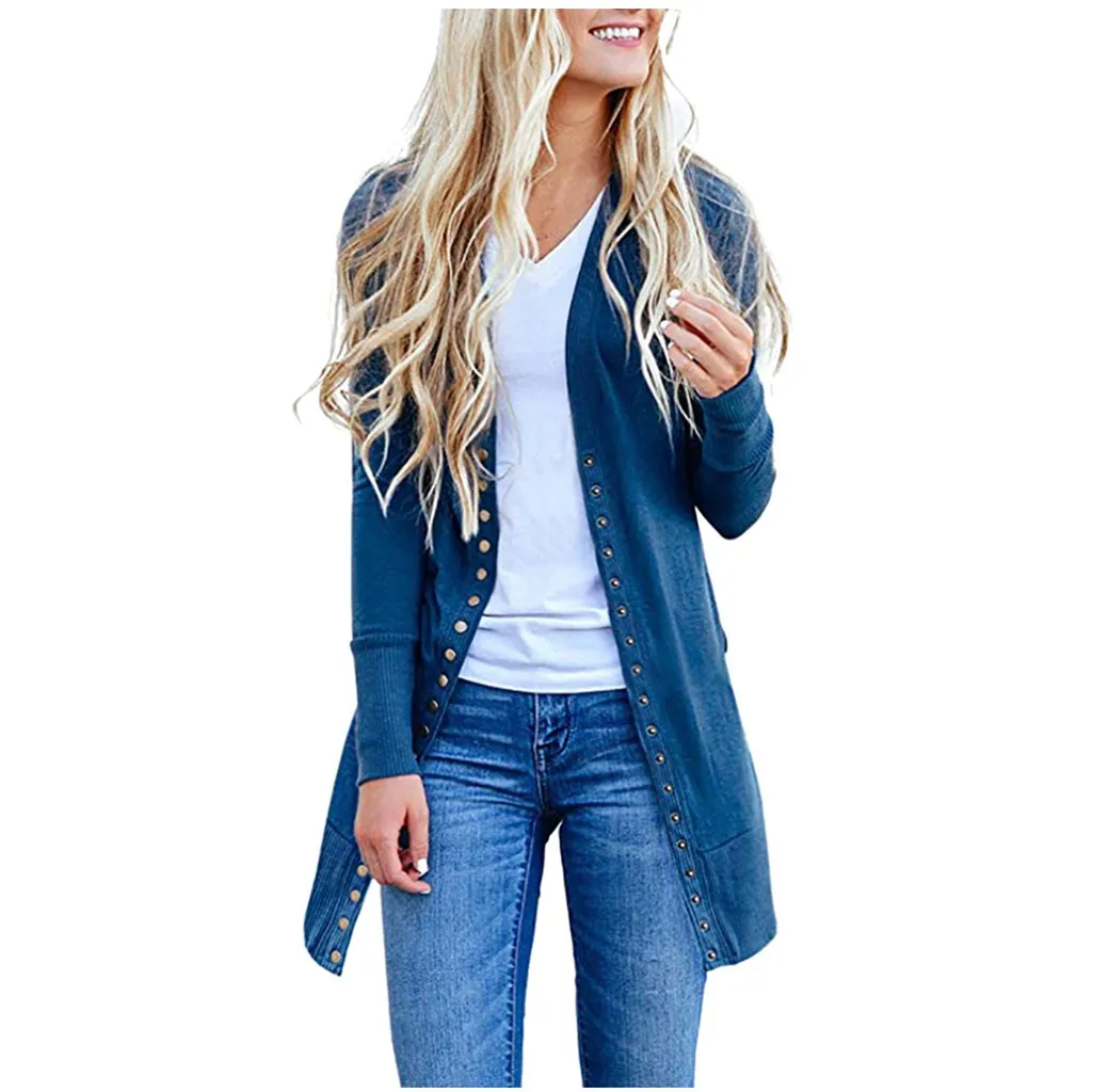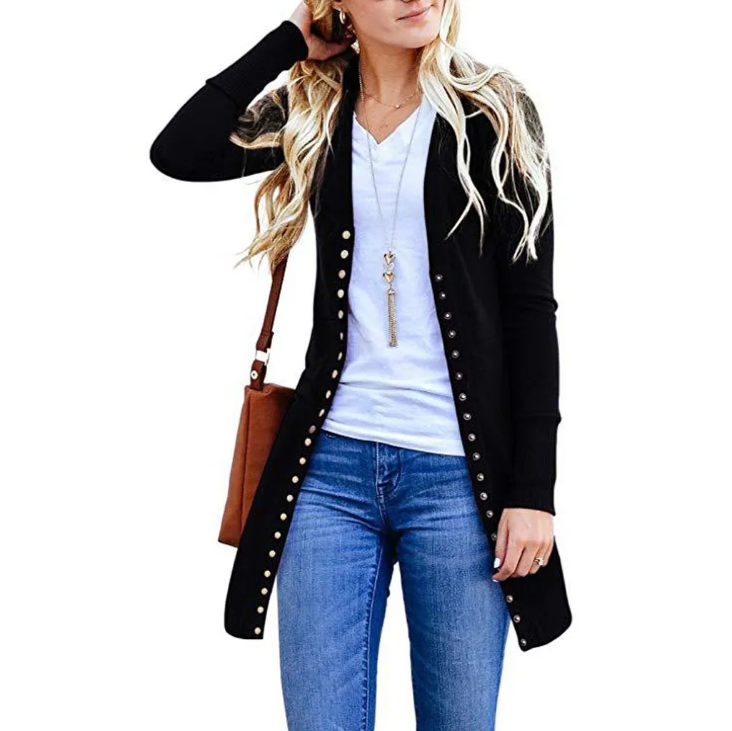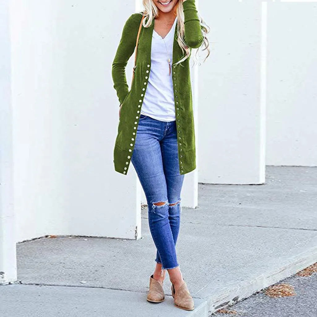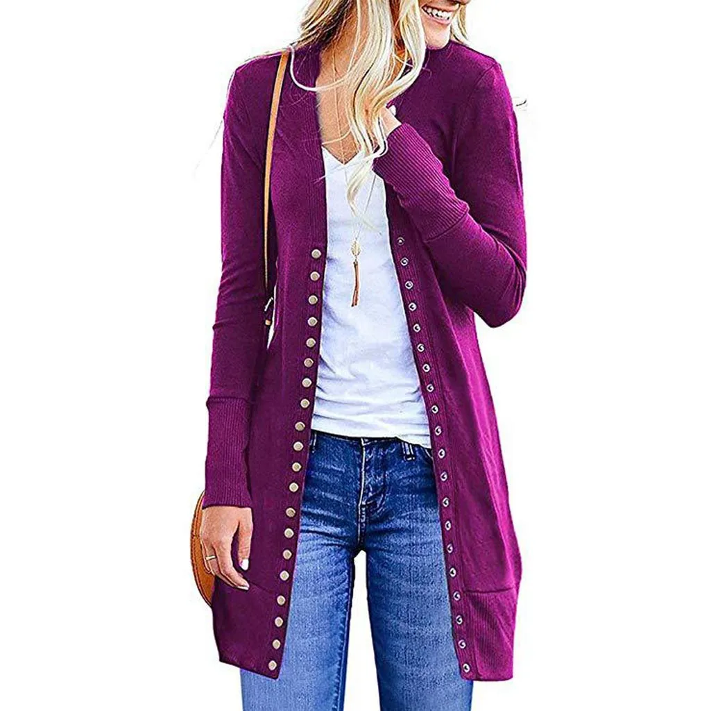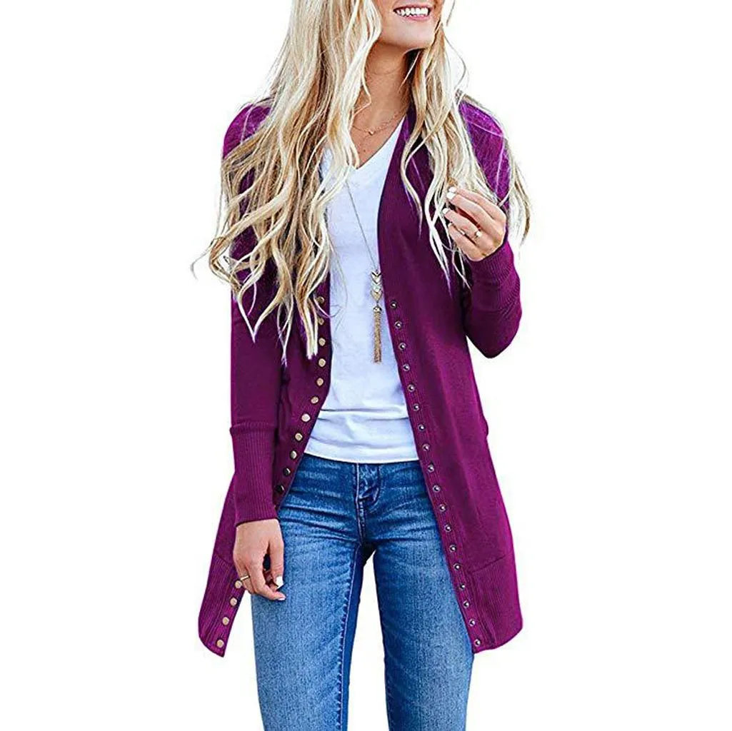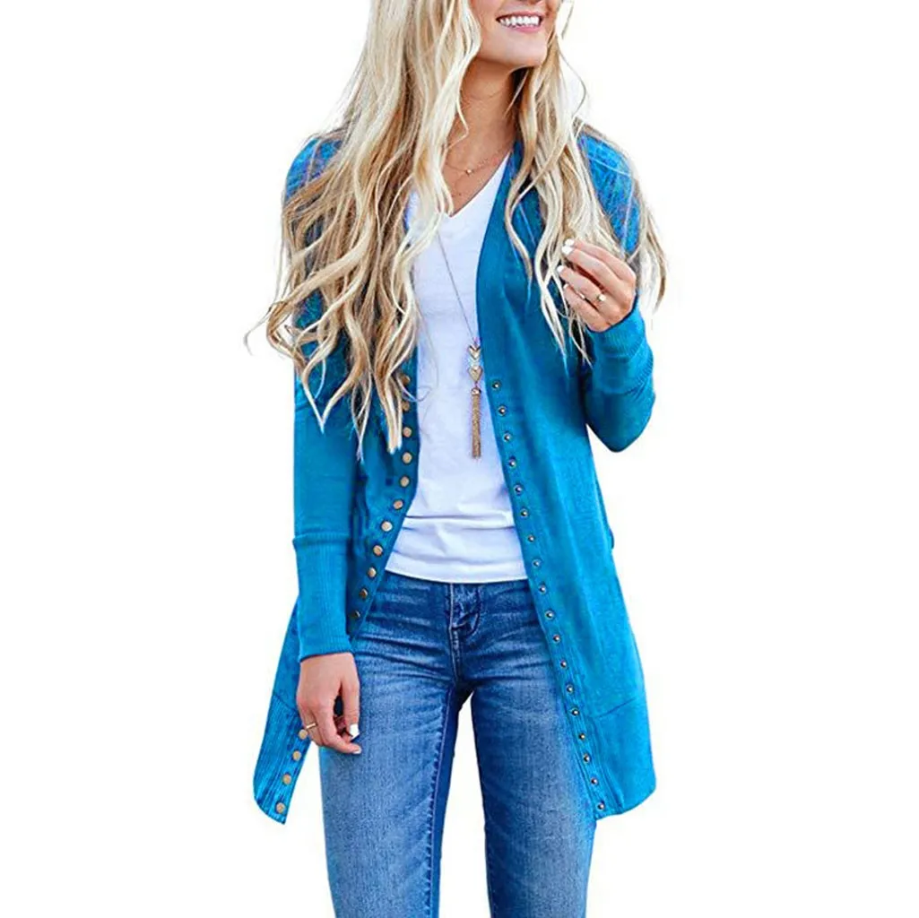 Женский модный однотонный кардиган на пуговицах с длинными рукавами, свободная вязаная куртка, пальто