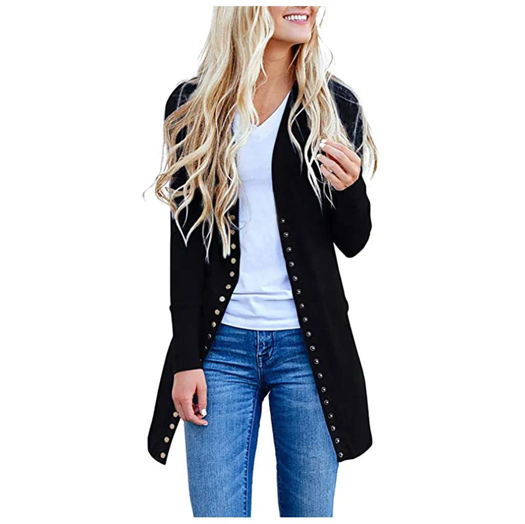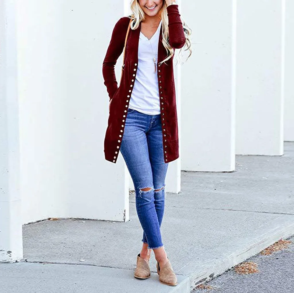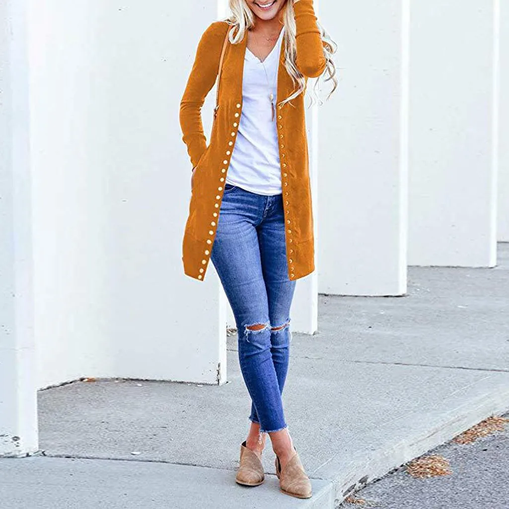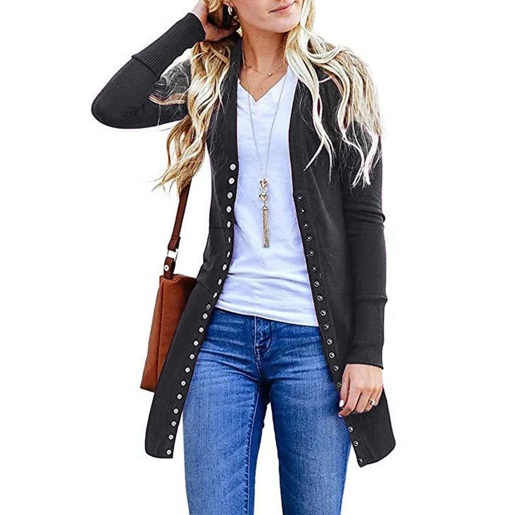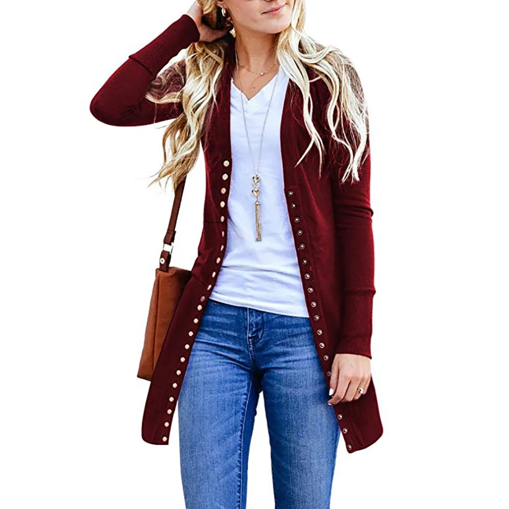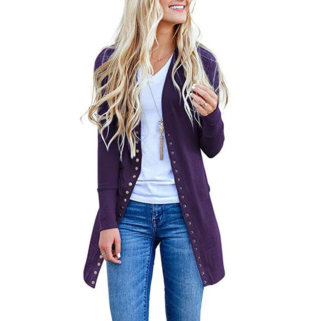 Женский модный однотонный кардиган на пуговицах с длинными рукавами, свободная вязаная куртка, пальто