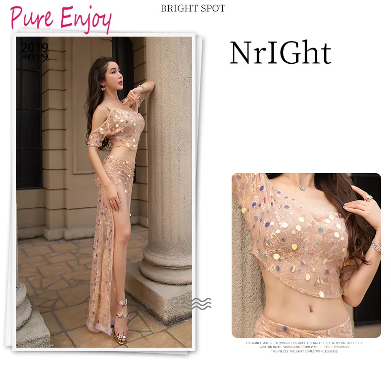 Набор для восточных танцев, женское кружевное платье с блестками, сексуальный топ, 2 шт., танцевальный костюм для танца живота, тренировочная одежда