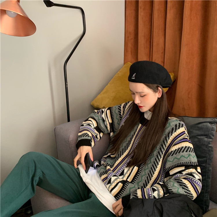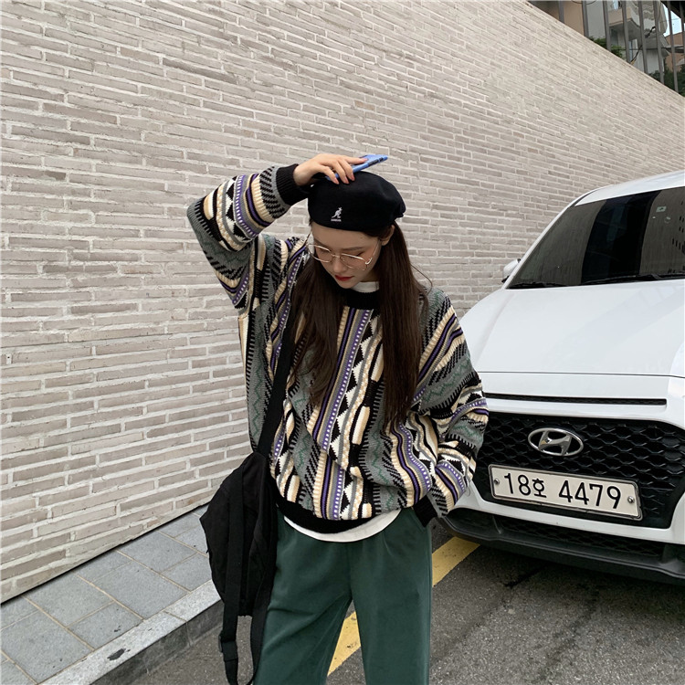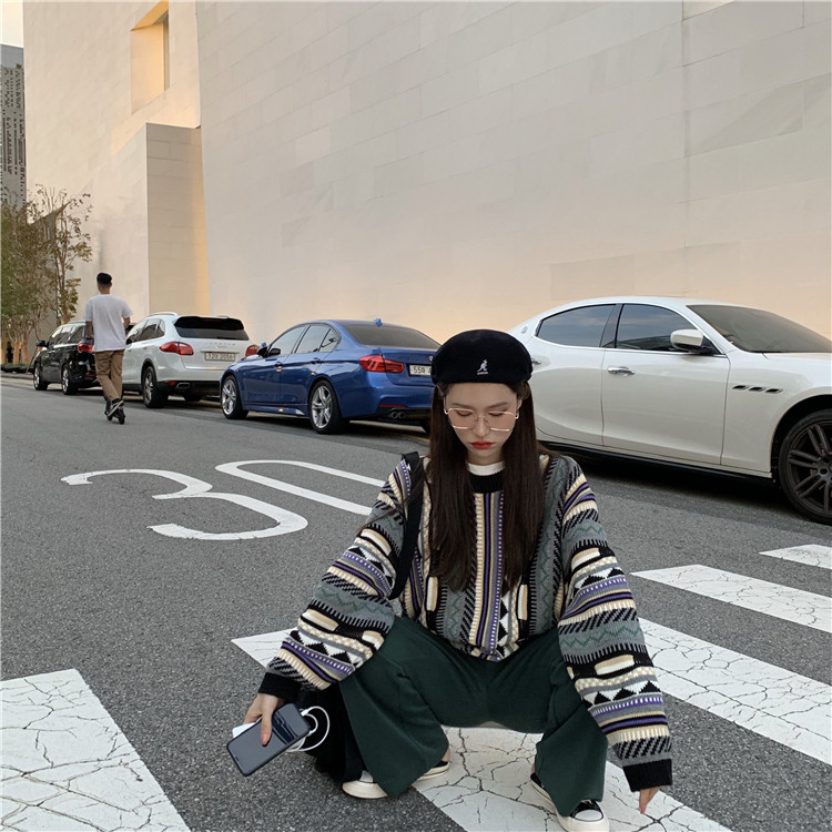 2019 осень и зима Национальный Стиль мулт-цвет вязаный свитер женские свитера и пуловеры