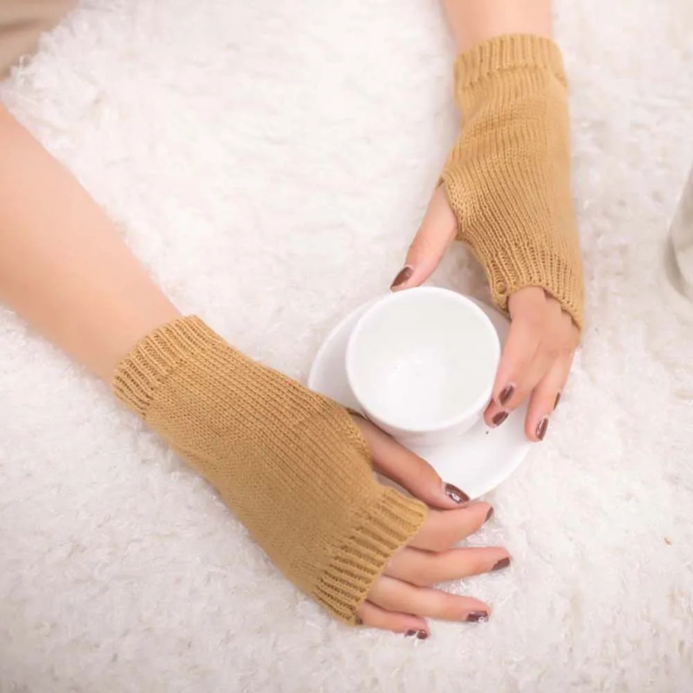 1 пара, женские теплые вязаные перчатки для девочек, зимние перчатки без пальцев, мягкие теплые варежки (без розничной упаковки) Безопасно упаковывается в пузырчатую сумку)