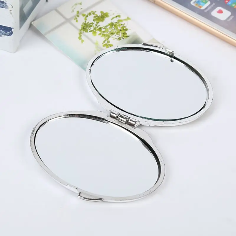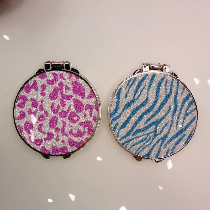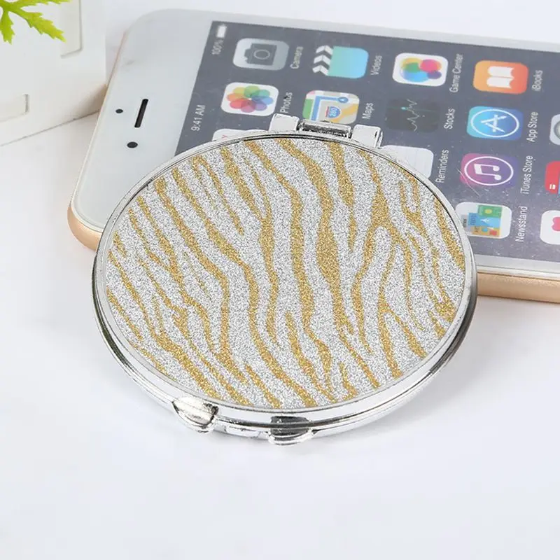 Мини Круглая Форма макияжа двойные двусторонние зеркала, с блестящим порошковым декором, подходит для вашей маленькой модной сумочки.