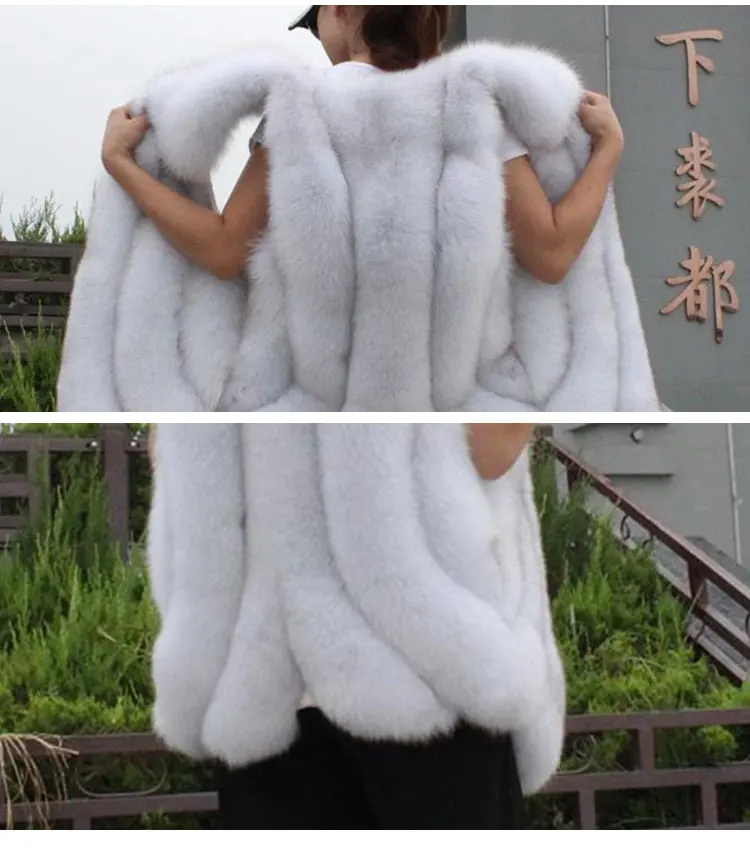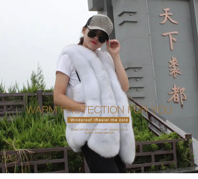 Осенне-зимний новый жилет из лисьего меха для женщин, элегантный однотонный жилет с закругленным швом и карманами, повседневный удобный теплый жилет из лисьего меха