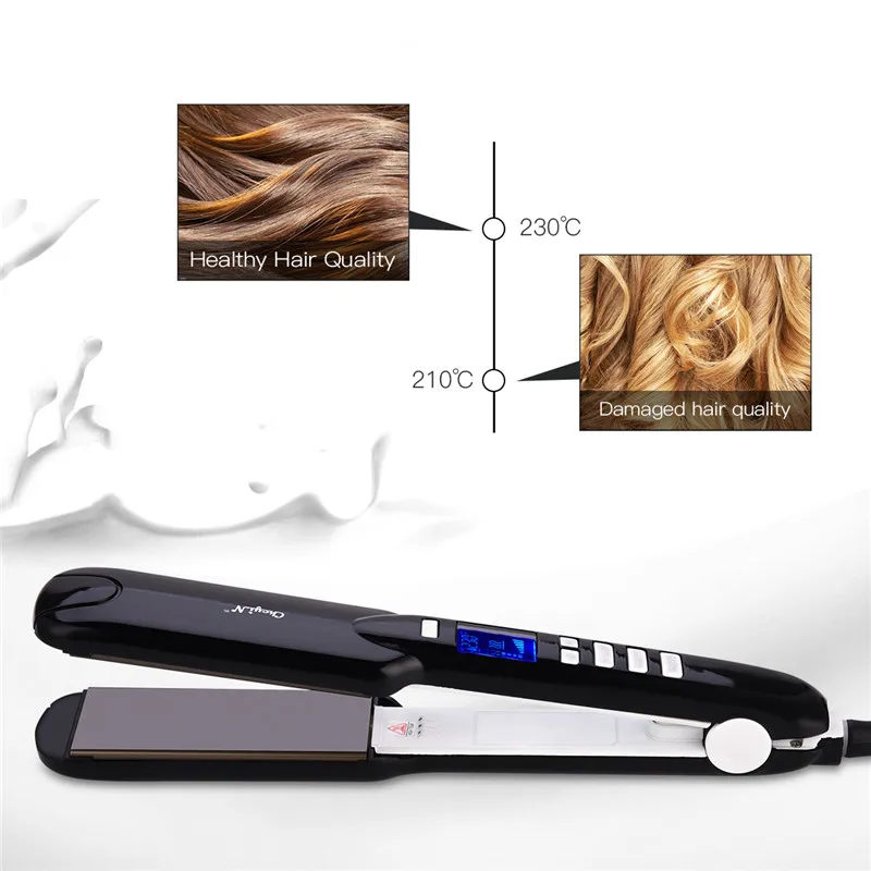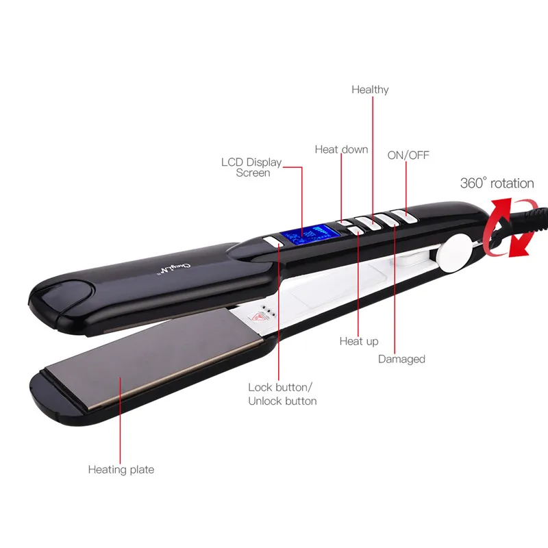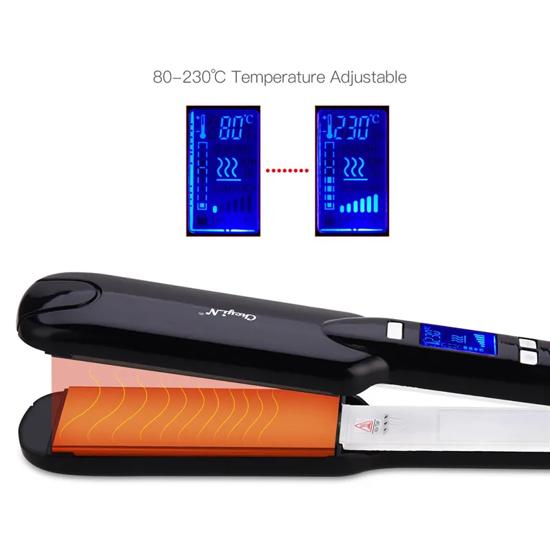 【Широкий температурный диапазон 】 температура может быть скорректирована через [+]/[-] кнопку от 80-230 ℃, каждые 5 ℃ является файл, идеально подходит для всех стилей и потребностей волос. С светодиодный дисплей для чтения.