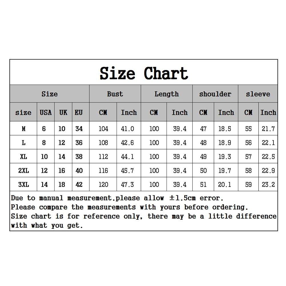 [Наш Размер 3XL] Ширина плеч: 51 см/20,1 ", обхват груди: 120 см/47,3", Длина: 100 см/39,4 ", длина рукава: 59 см/23,2" (прибл.)