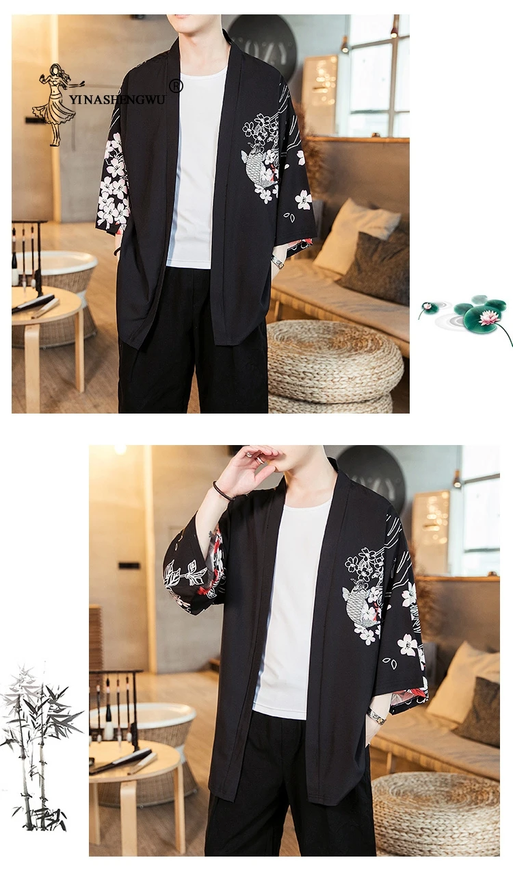 Традиционное японское кимоно Yukata, кимоно, кардиган, мужская азиатская одежда, Пляжное тонкое пальто, Повседневный Кардиган, рубашки, японские кимоно для мужчин