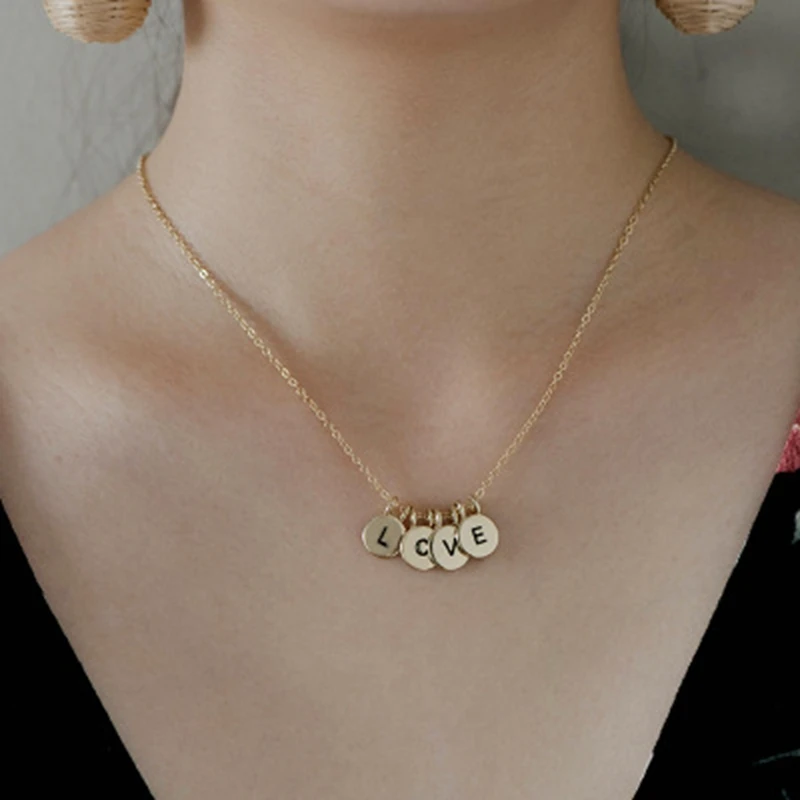 Заказное ожерелье с буквенным принтом на диск, оригинальное ожерелье с надписью A- Z, именное слово, цепочка, подарок на любовь