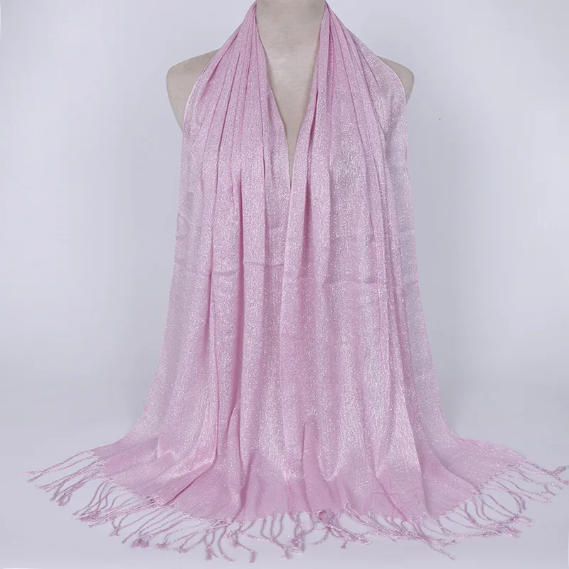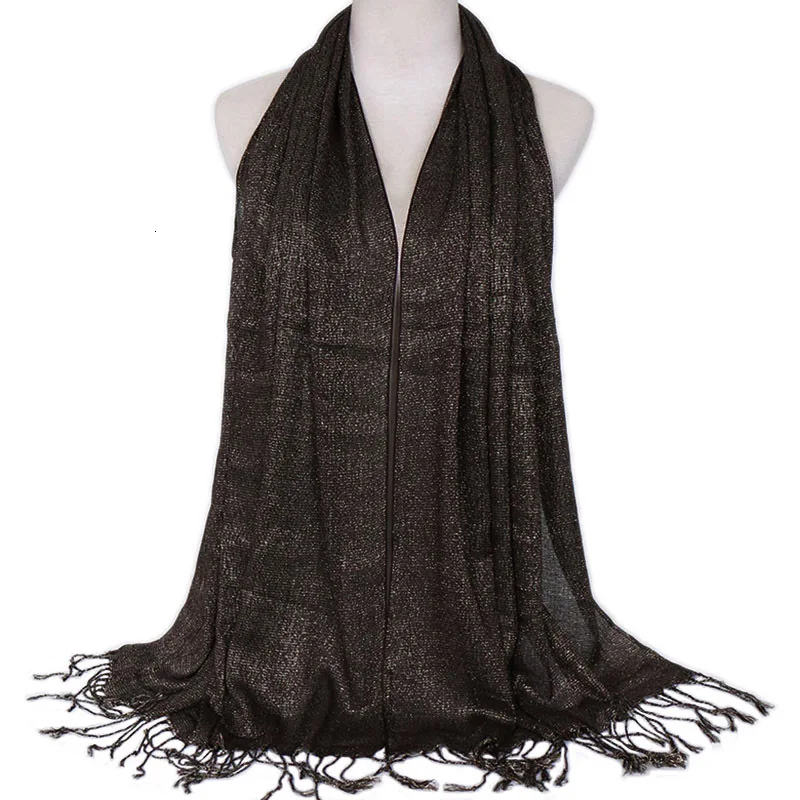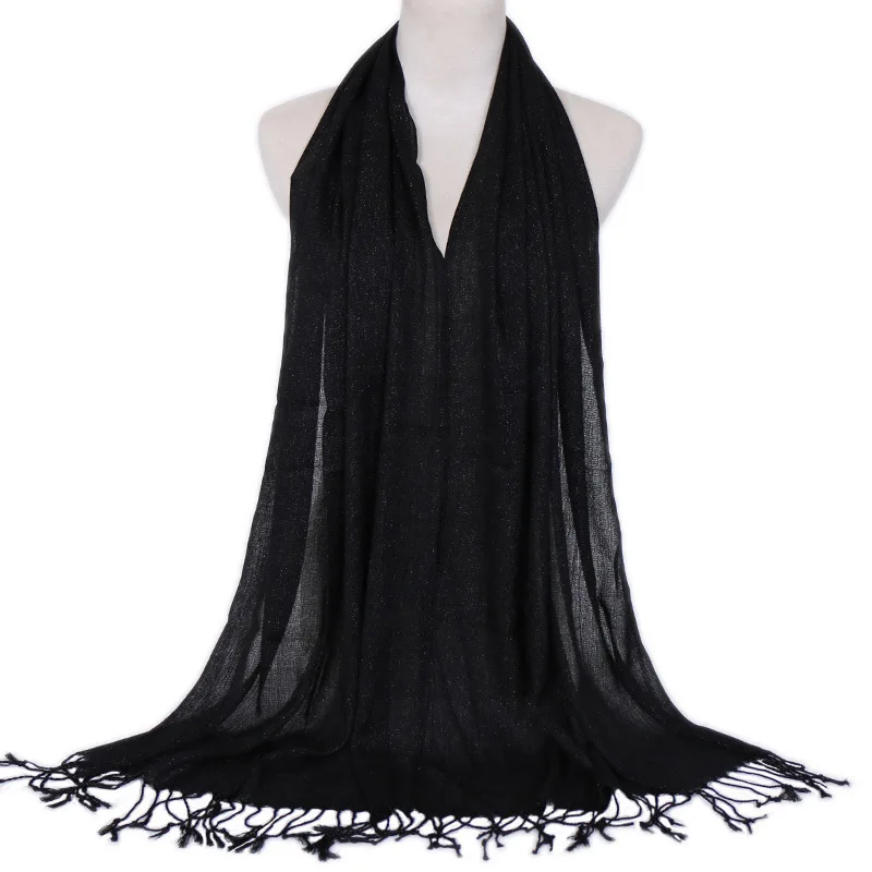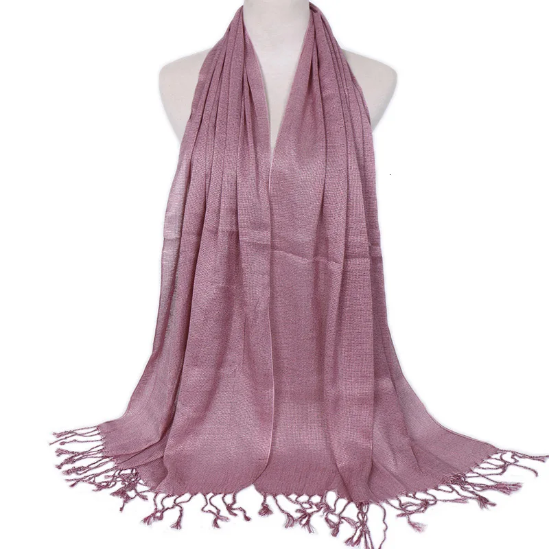 170*60 см, хлопковый шарф, шаль для женщин, кисточка с бахромой, блестящая Длинная накидка, хиджаб, палантин, однотонный хиджаб, шарфы для женщин, элегантные