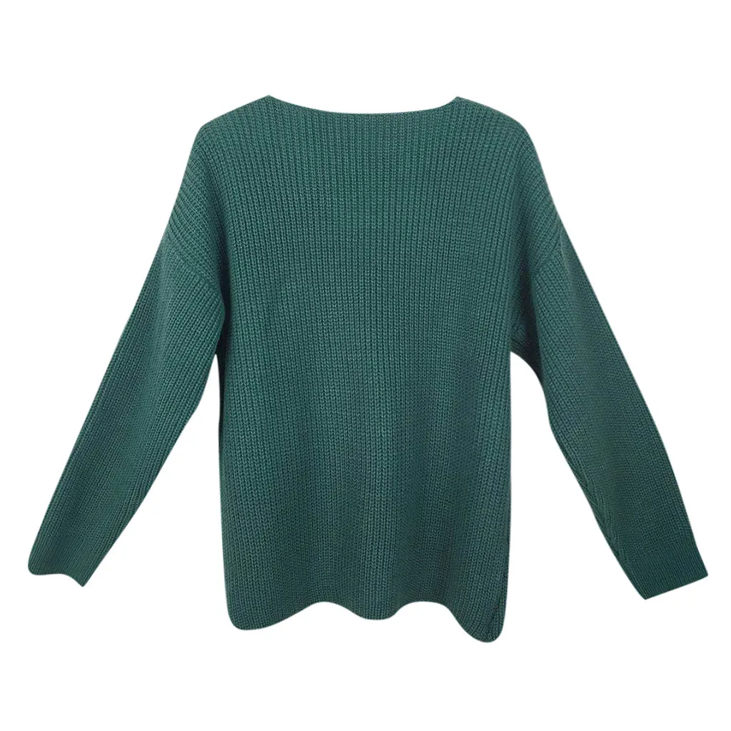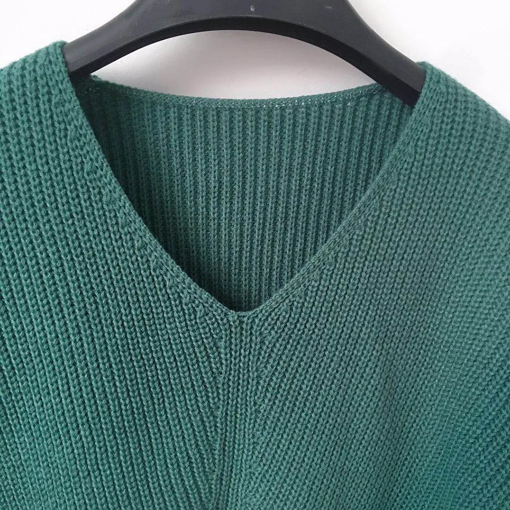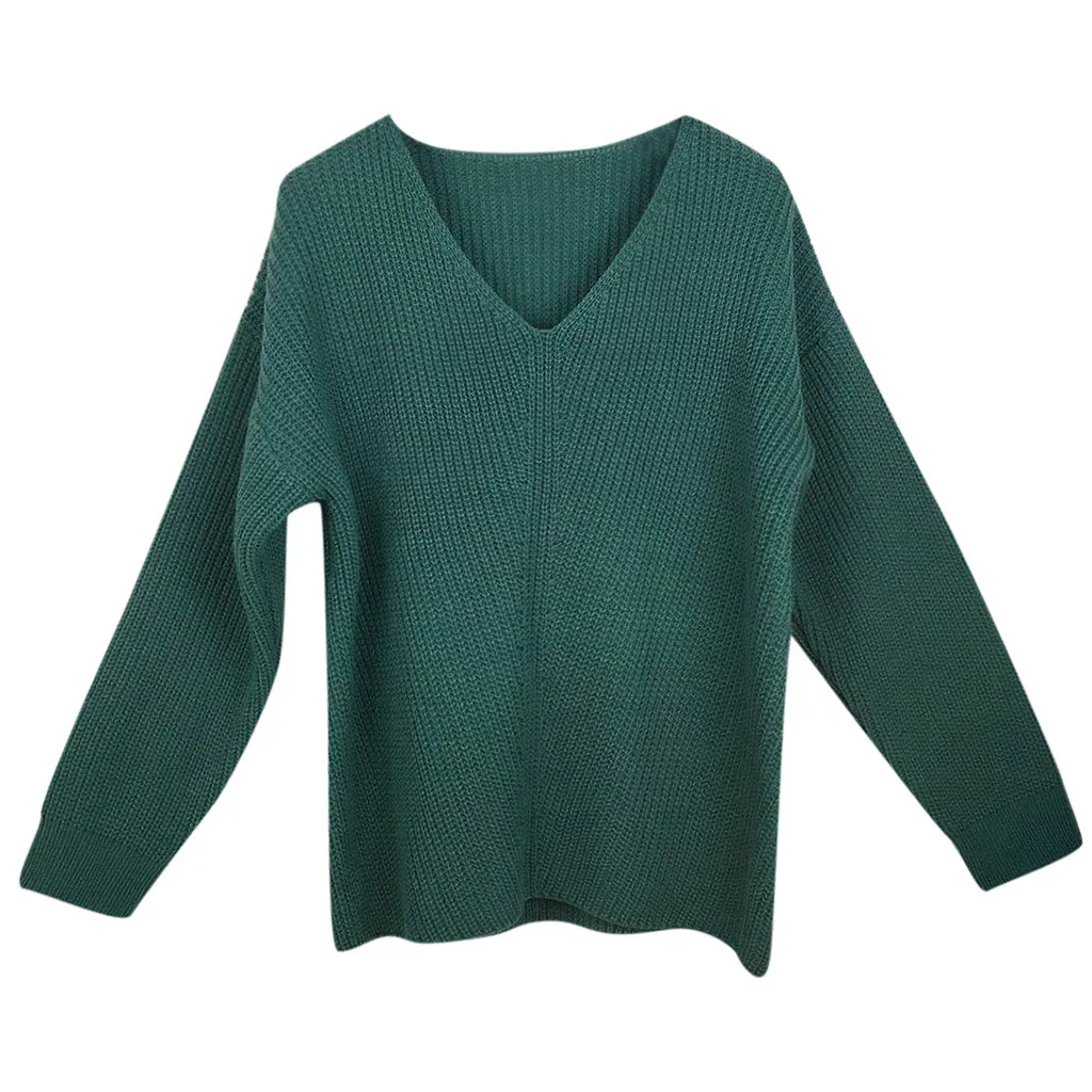 Женский модный Повседневный приталенный вязаный свитер с длинным рукавом и v-образным вырезом