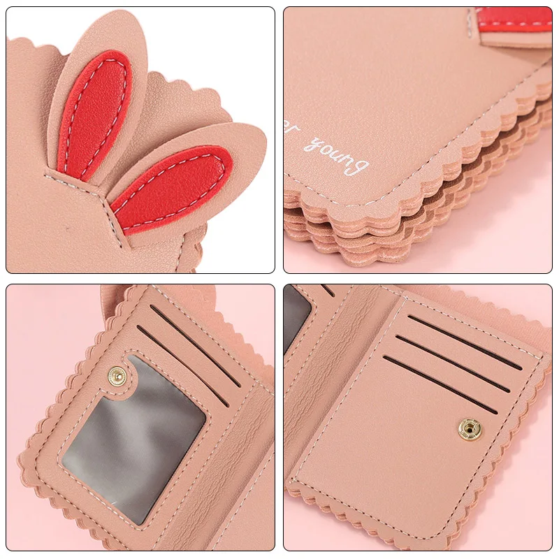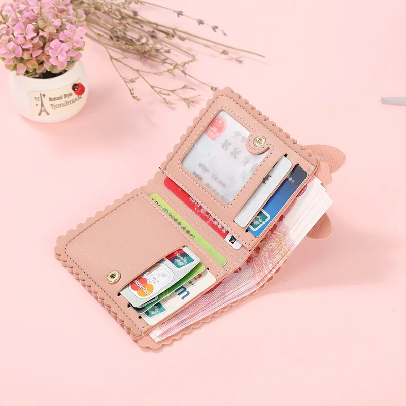 Женский Милый небольшой кожаный бумажник держатель кредитной карты кошелек на молнии портмоне с окошком ID