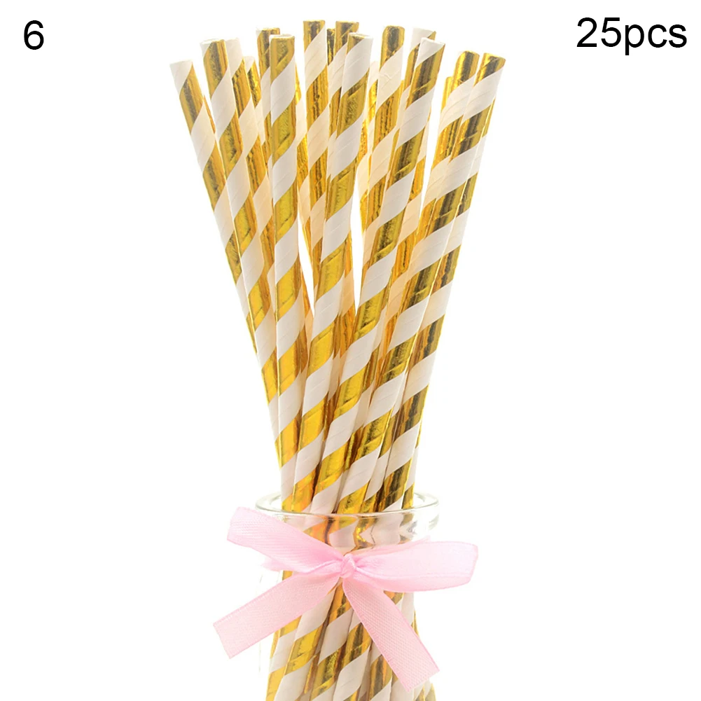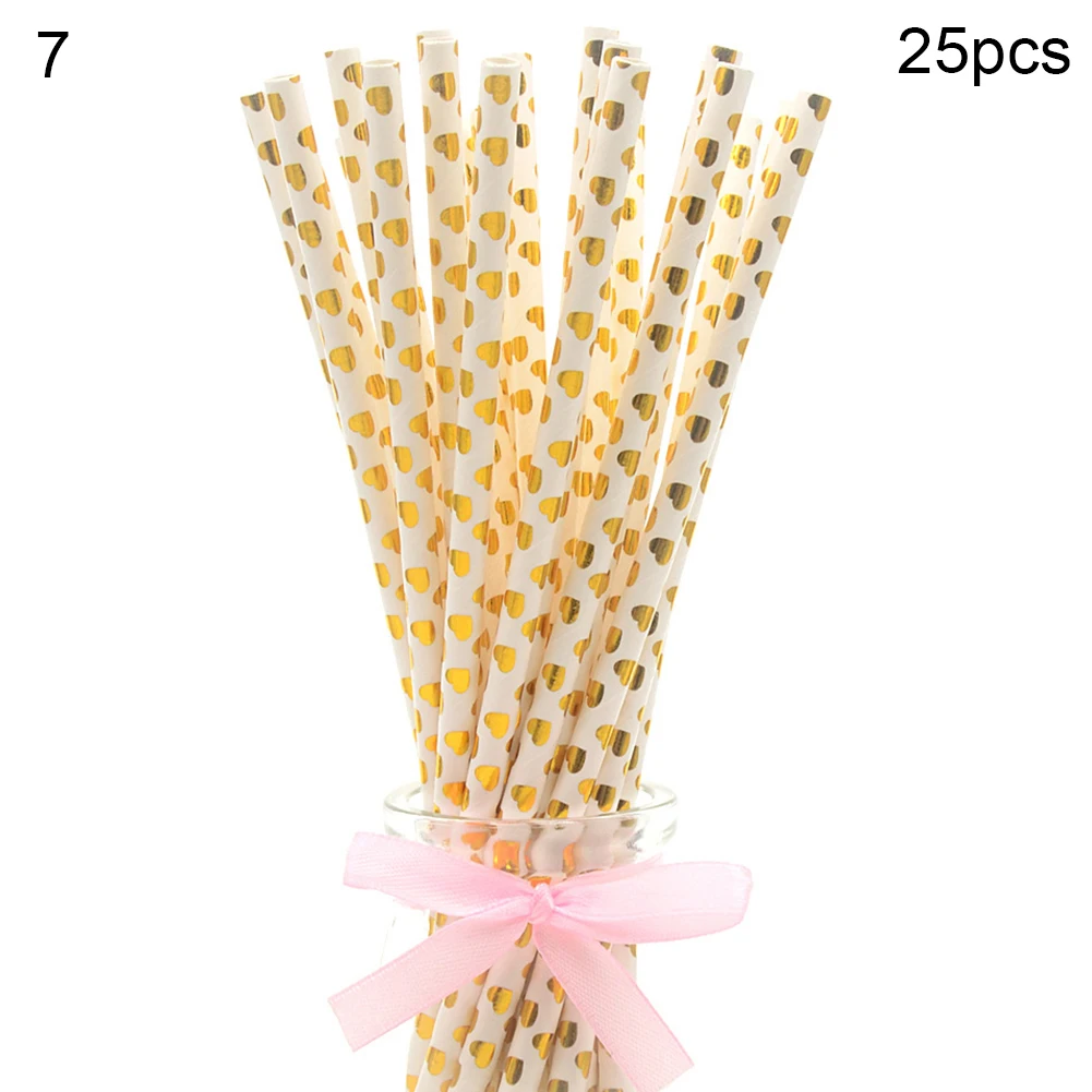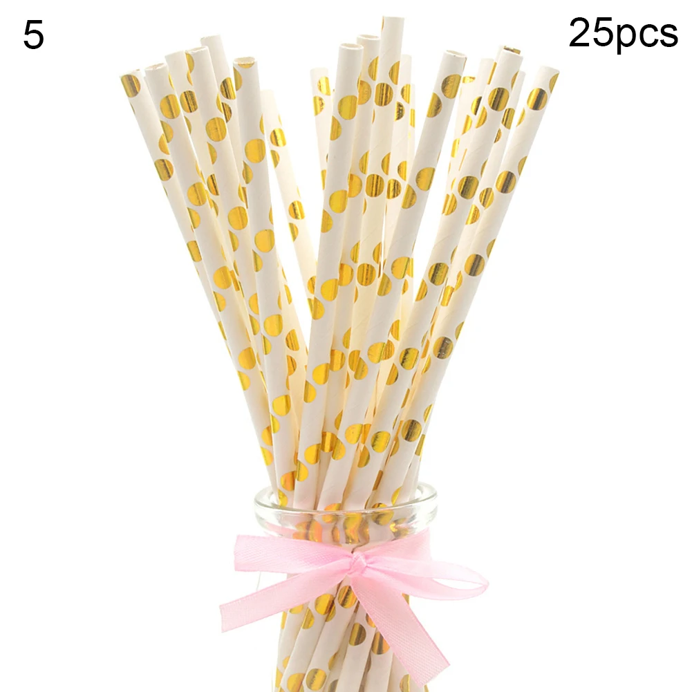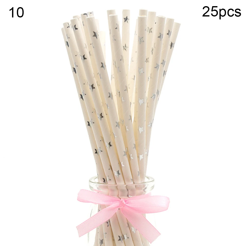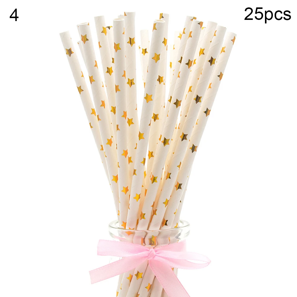 25Pcs Disposable Star Dot Stripe Paper Straws Kids Birthday Wedding Decoration