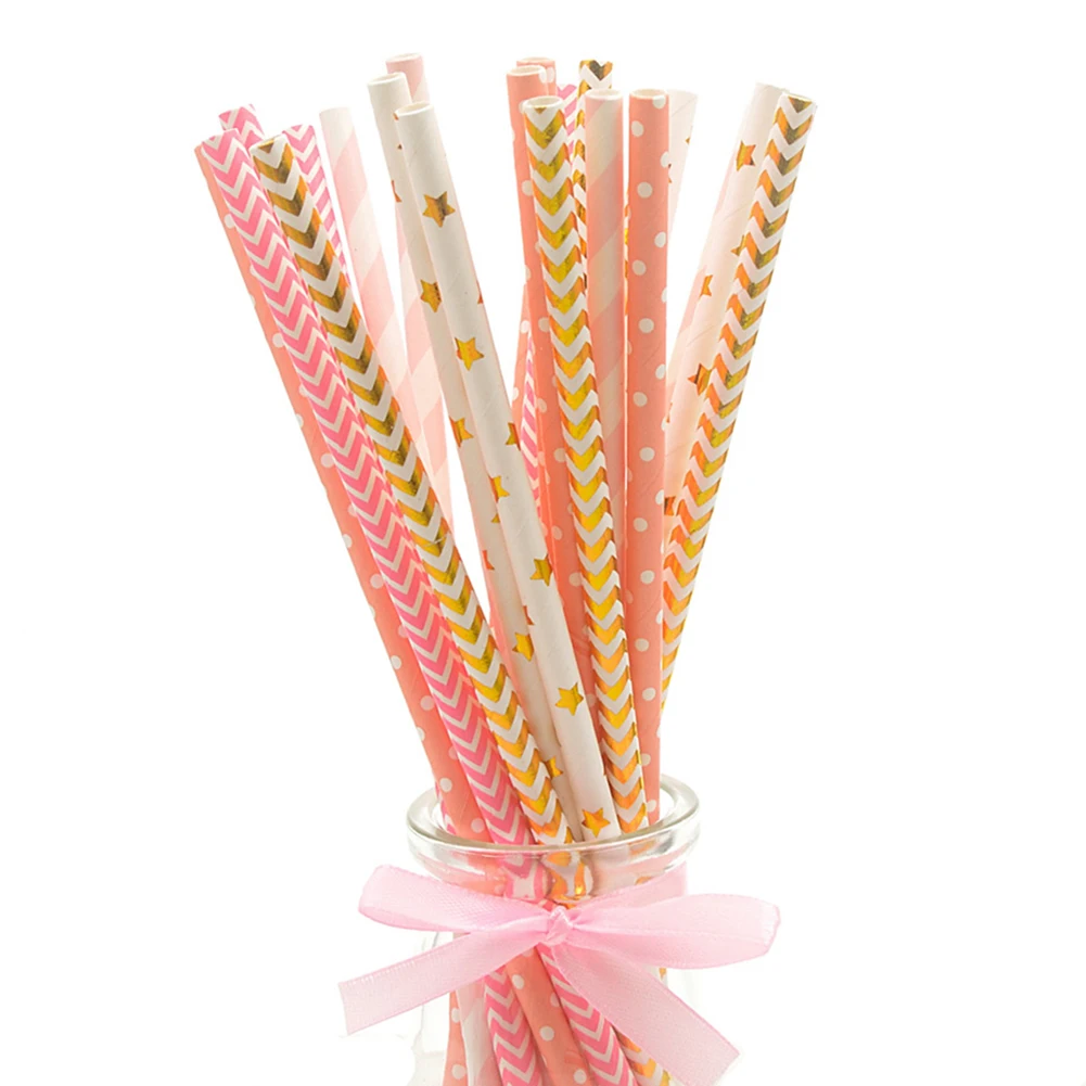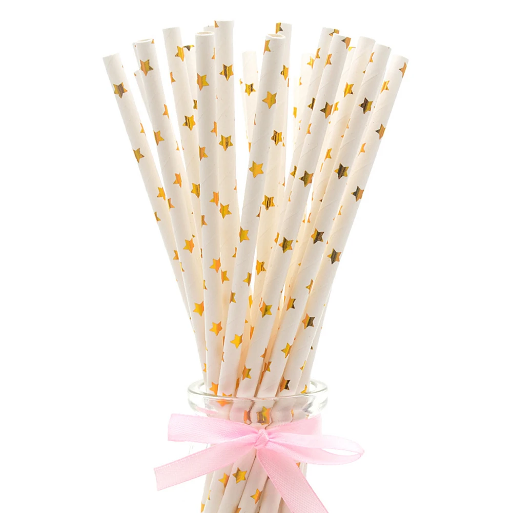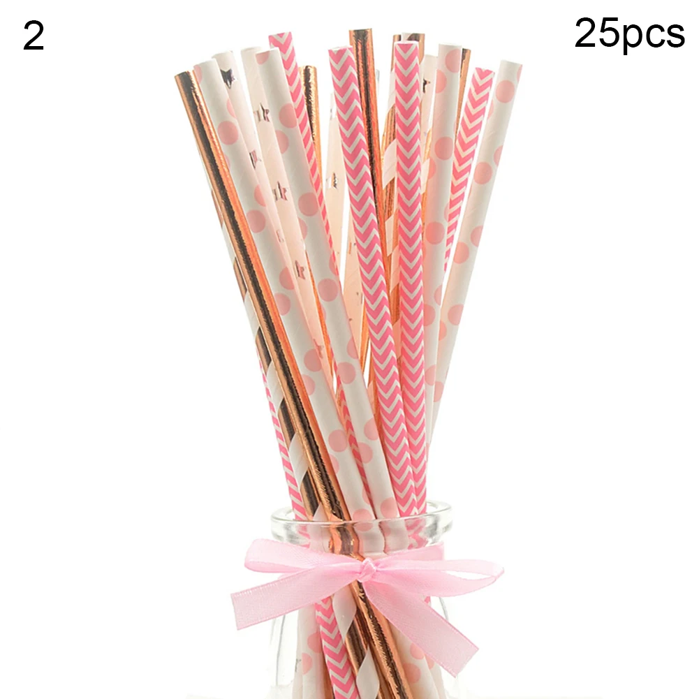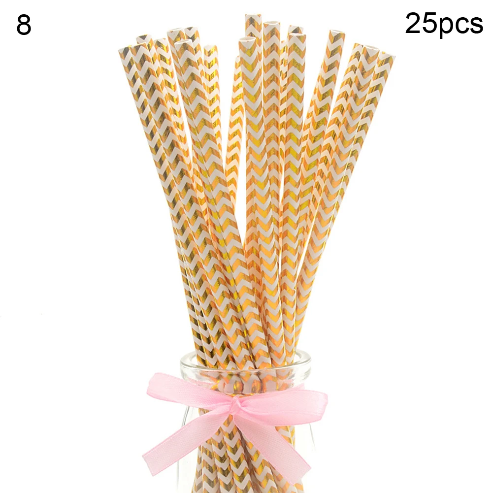 25Pcs Disposable Star Dot Stripe Paper Straws Kids Birthday Wedding Decoration