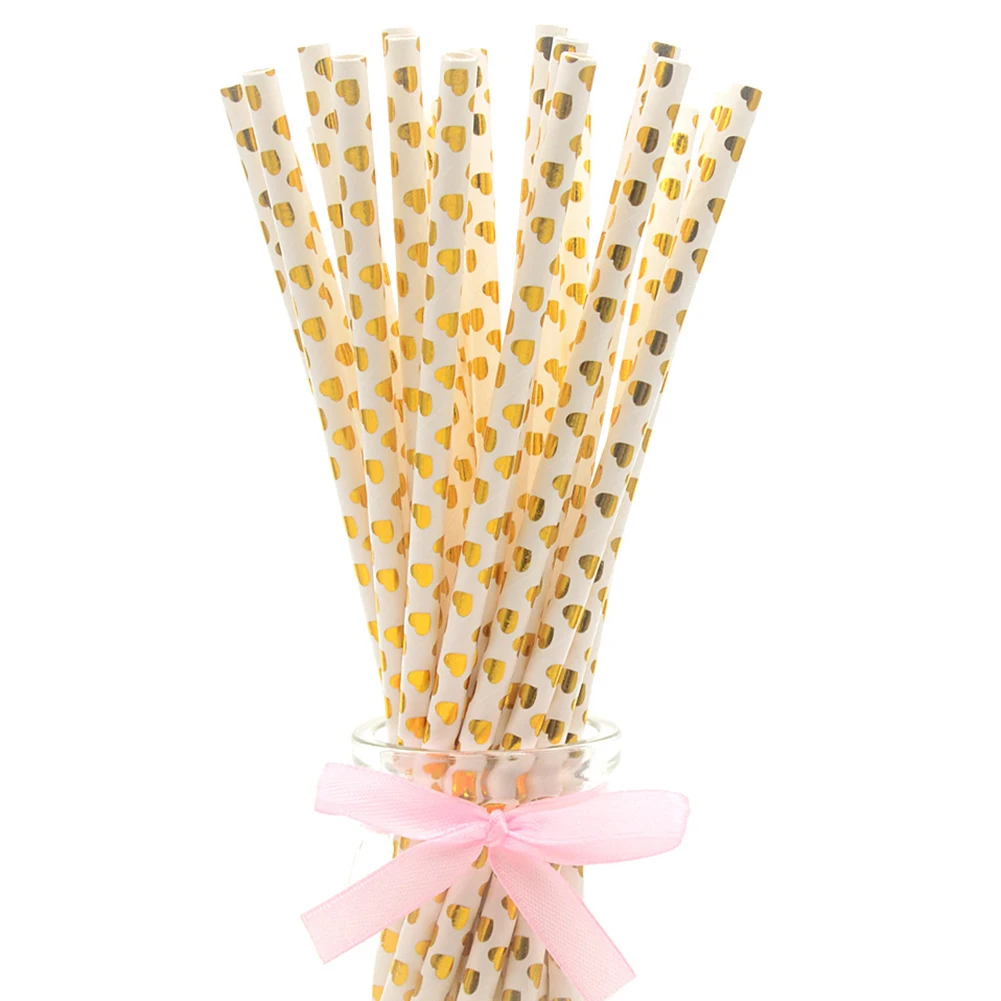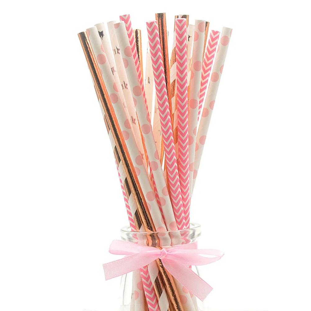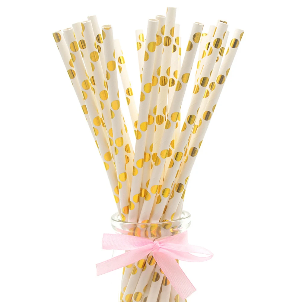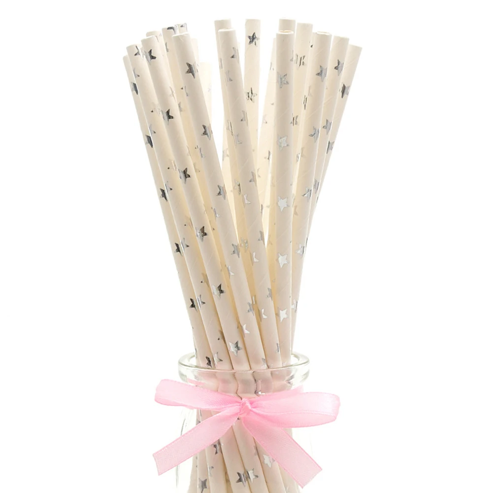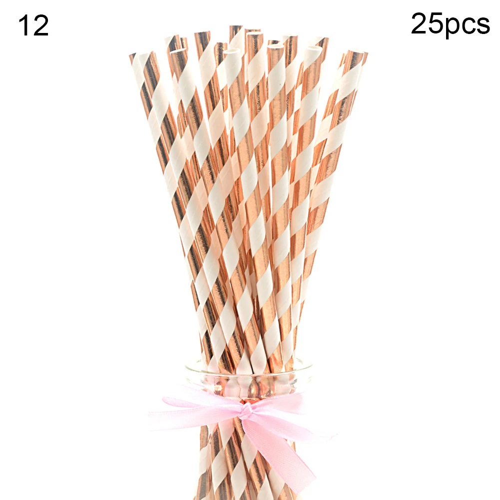 25Pcs Disposable Star Dot Stripe Paper Straws Kids Birthday Wedding Decoration
