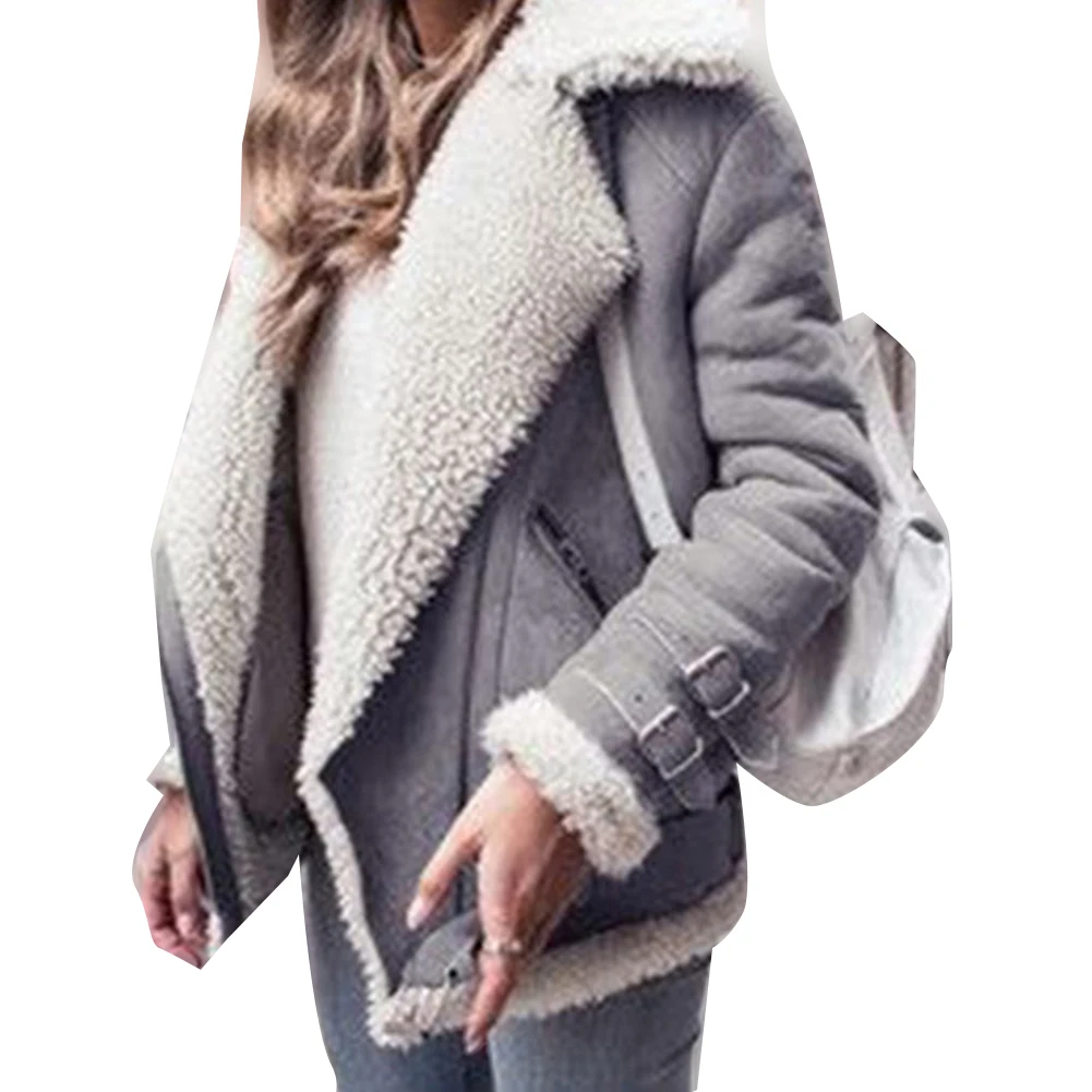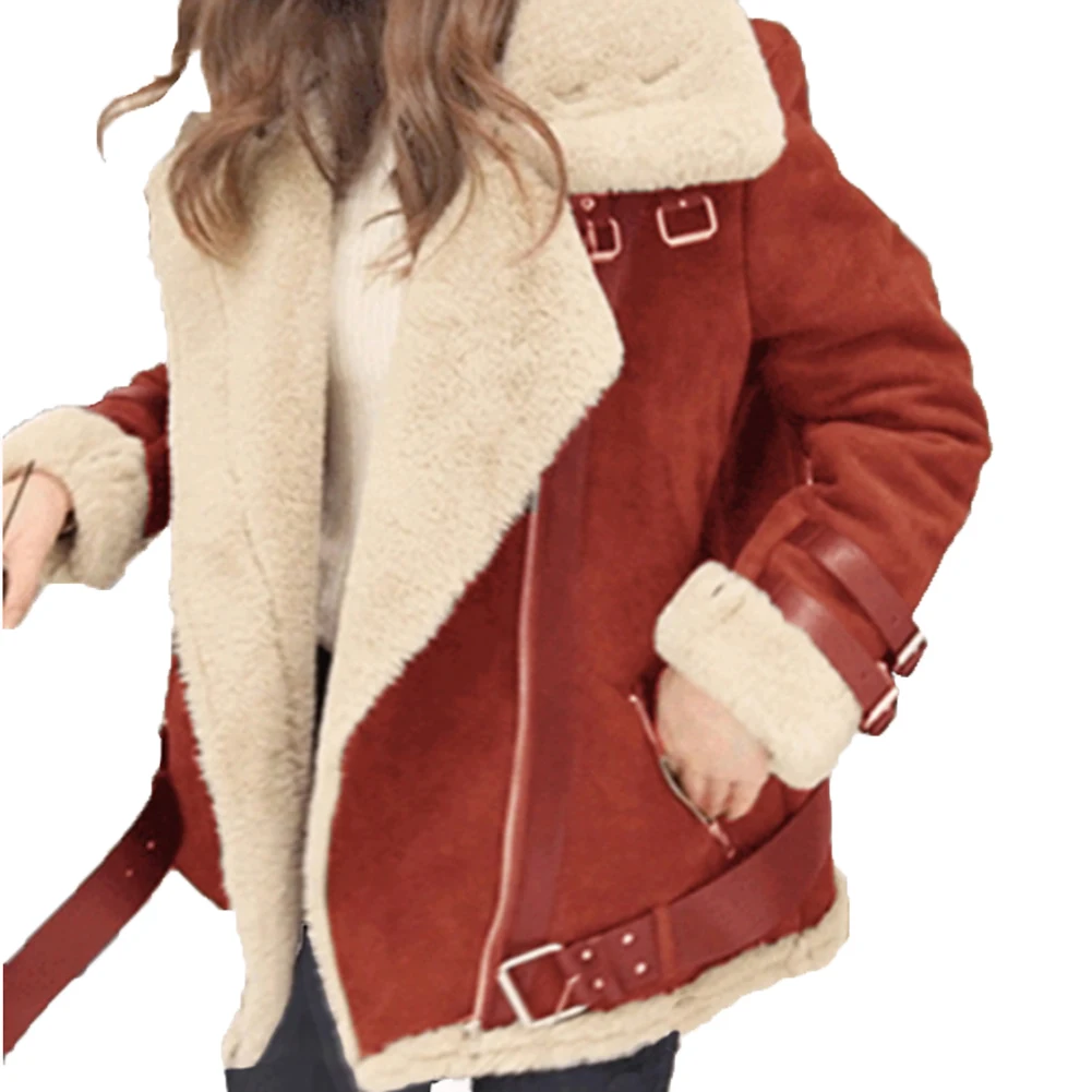 Женская зимняя флисовая куртка из искусственной кожи с длинным рукавом и лацканами, куртка на молнии, верхняя одежда