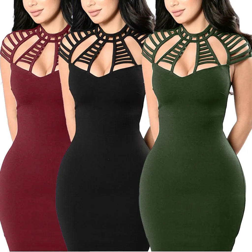 Женское Открытое сексуальное мини-платье Короткое облегающее вечернее платье для вечеринки Клубная одежда