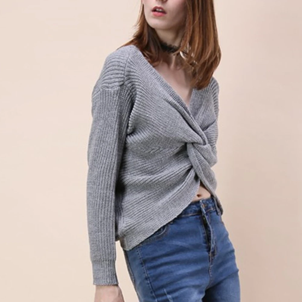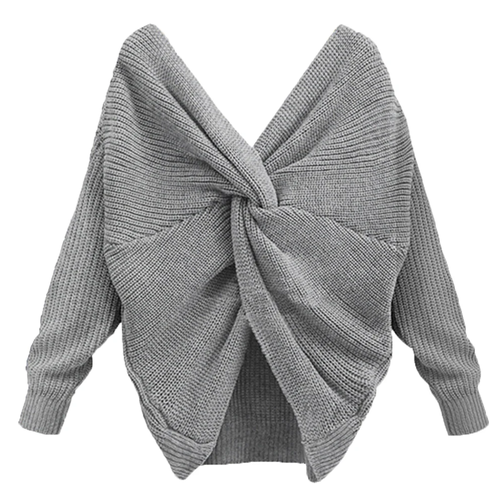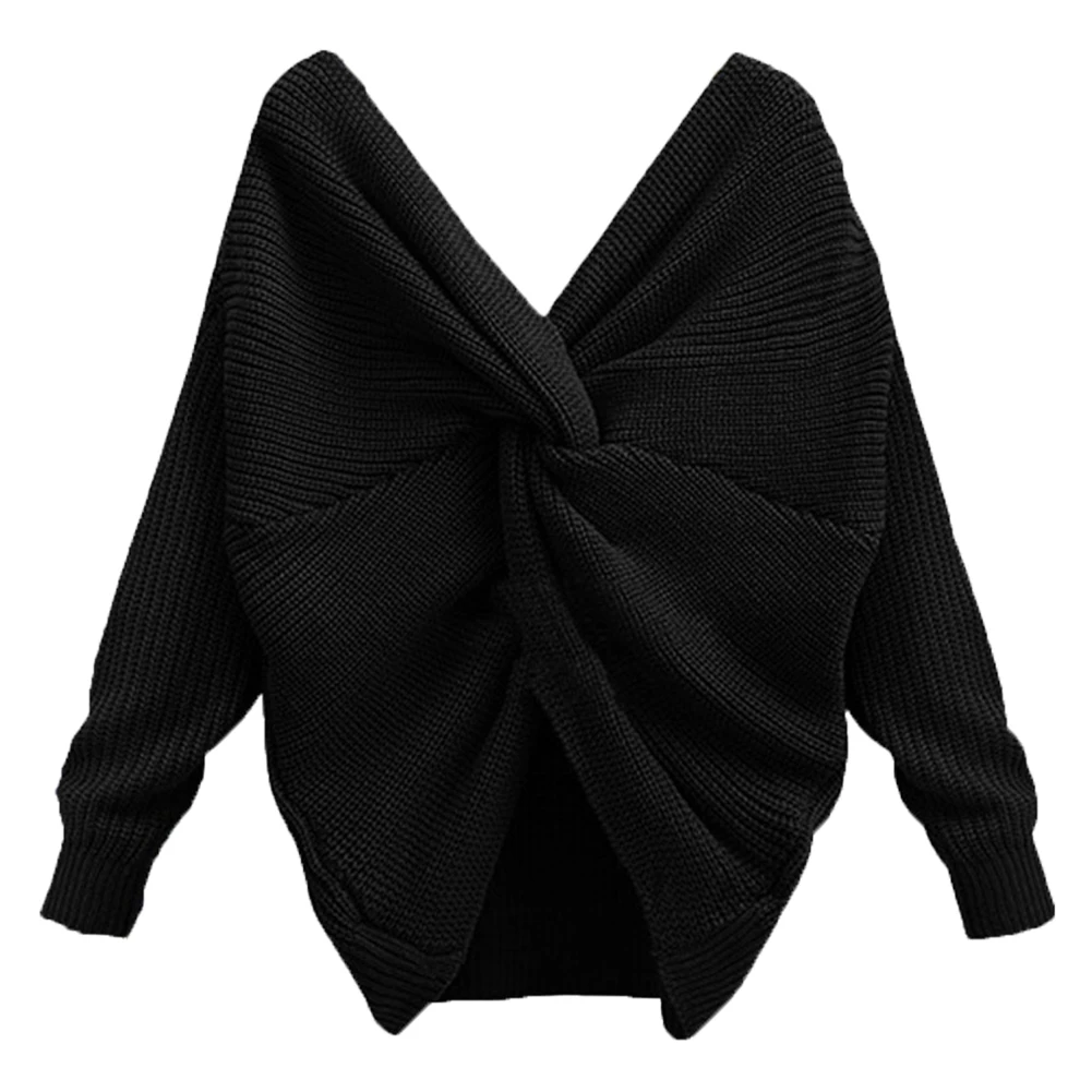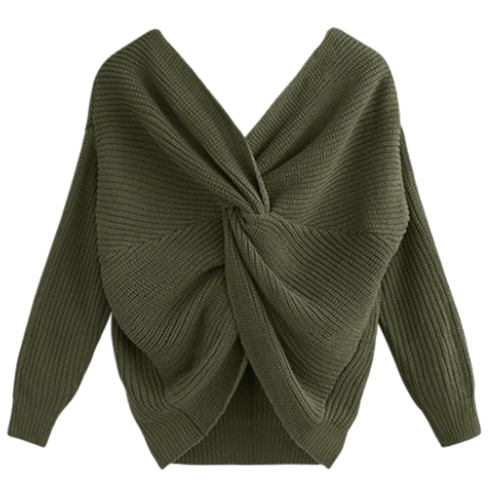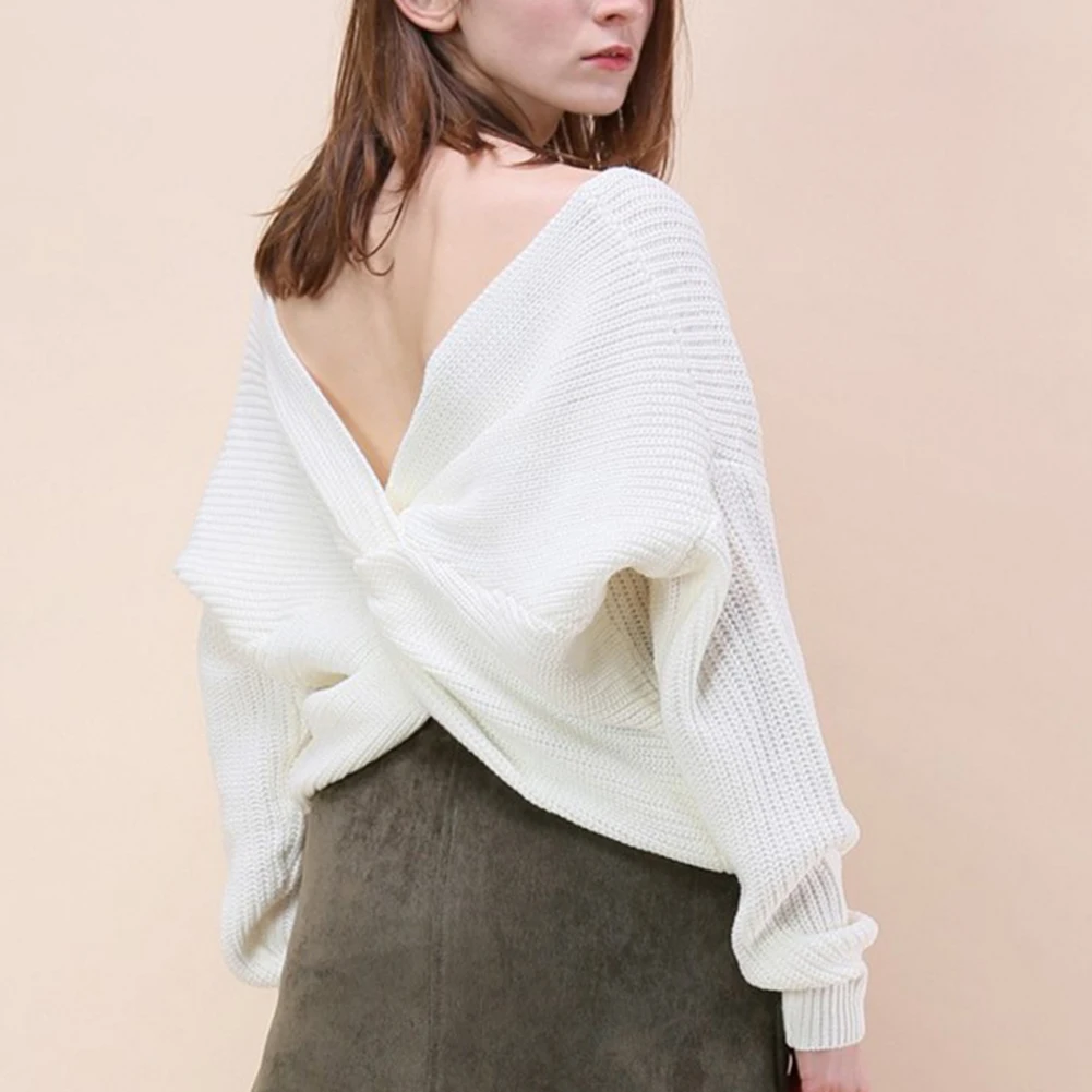 Autumn Winter Women Sweaters Twisted Backless Women Jumpers Solid Color Slim V Neck Sweater Jumper per