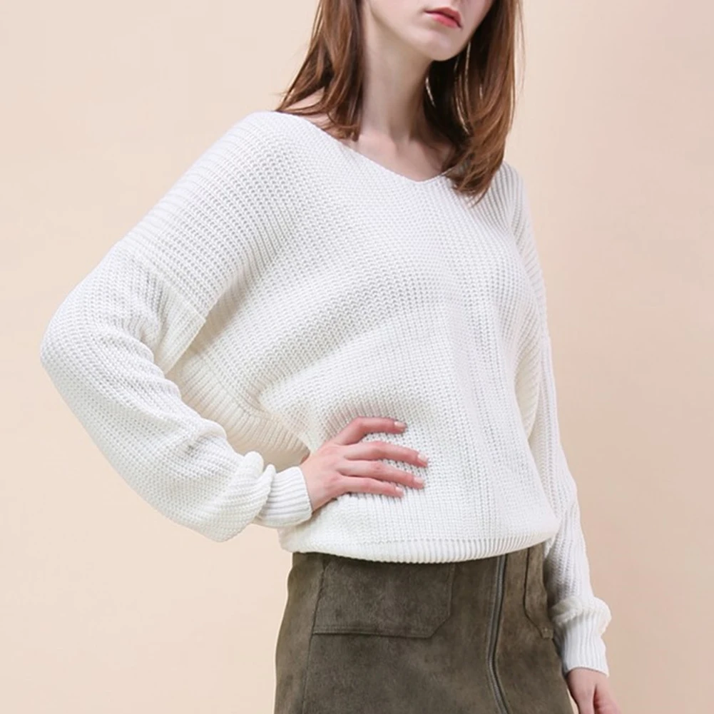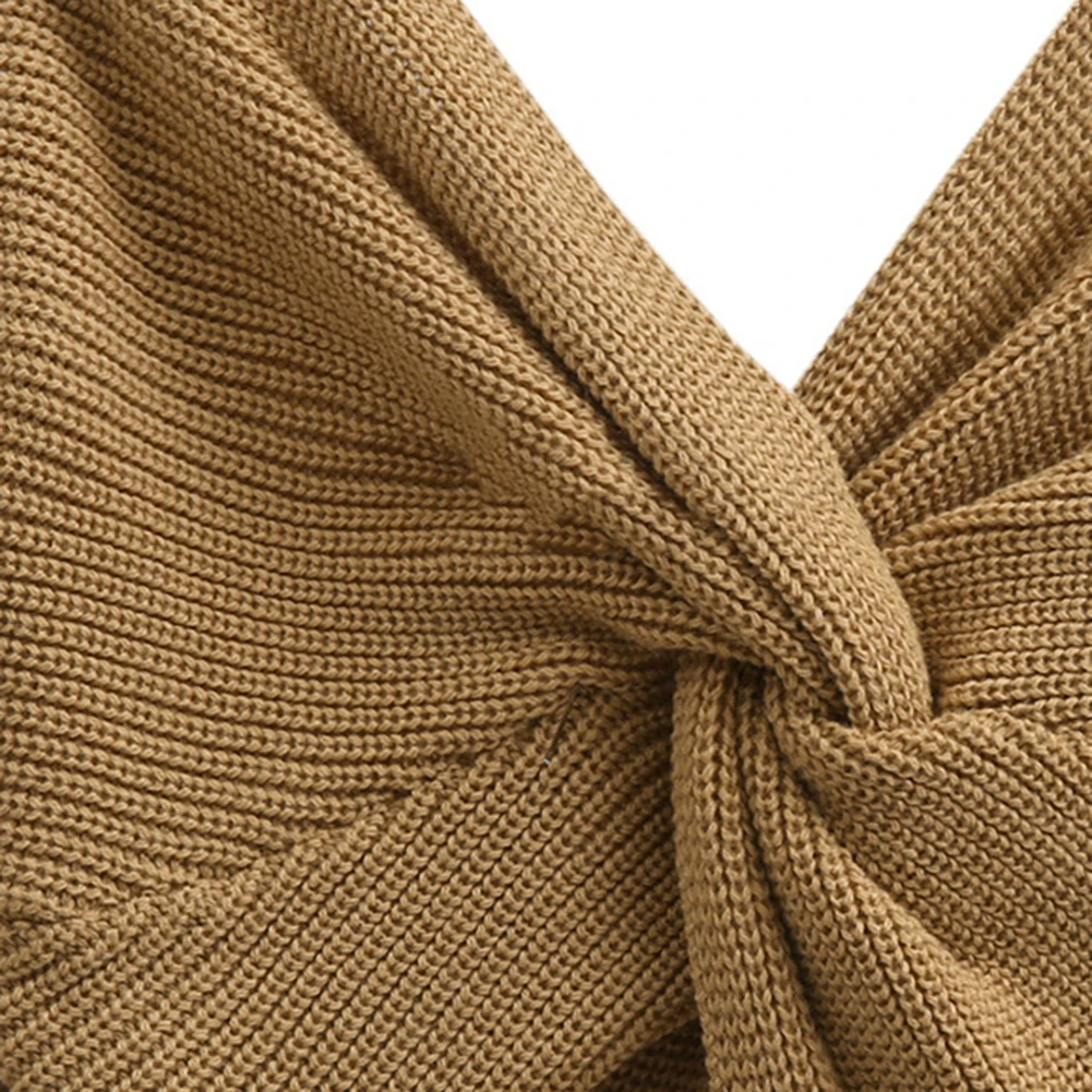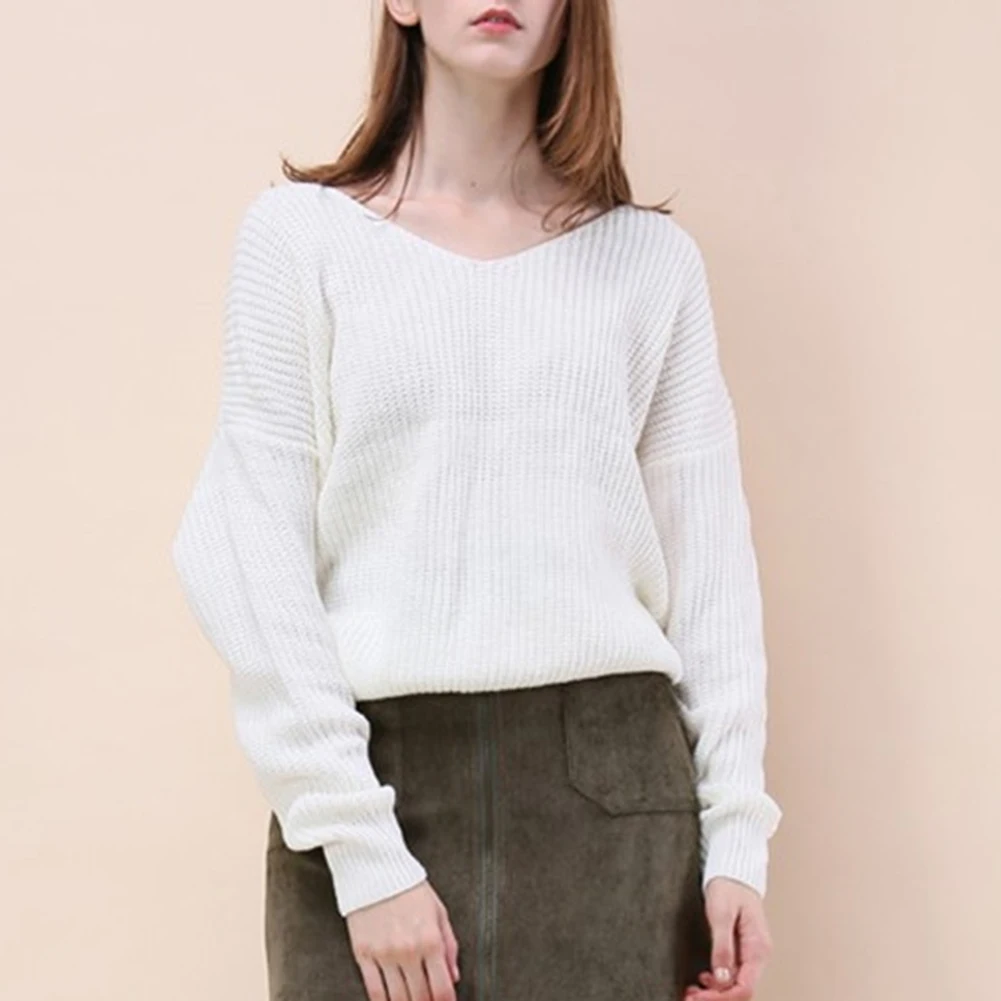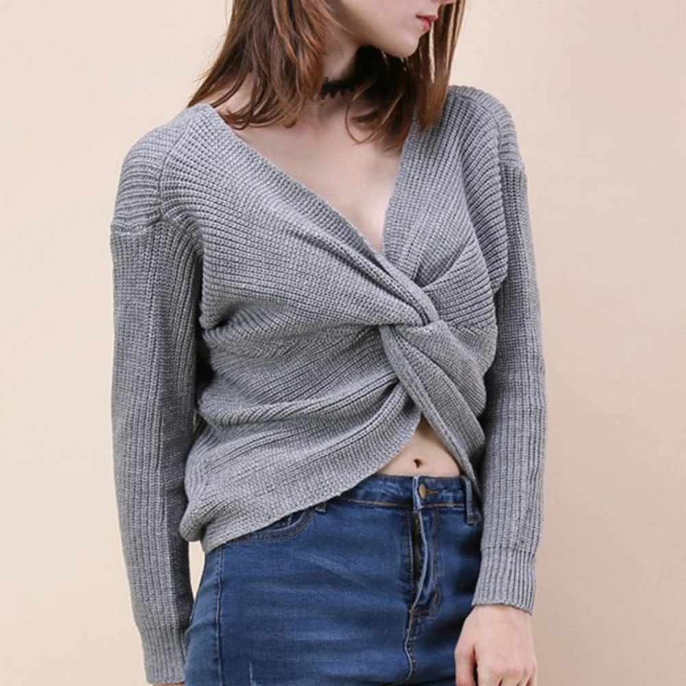Autumn Winter Women Sweaters Twisted Backless Women Jumpers Solid Color Slim V Neck Sweater Jumper per
