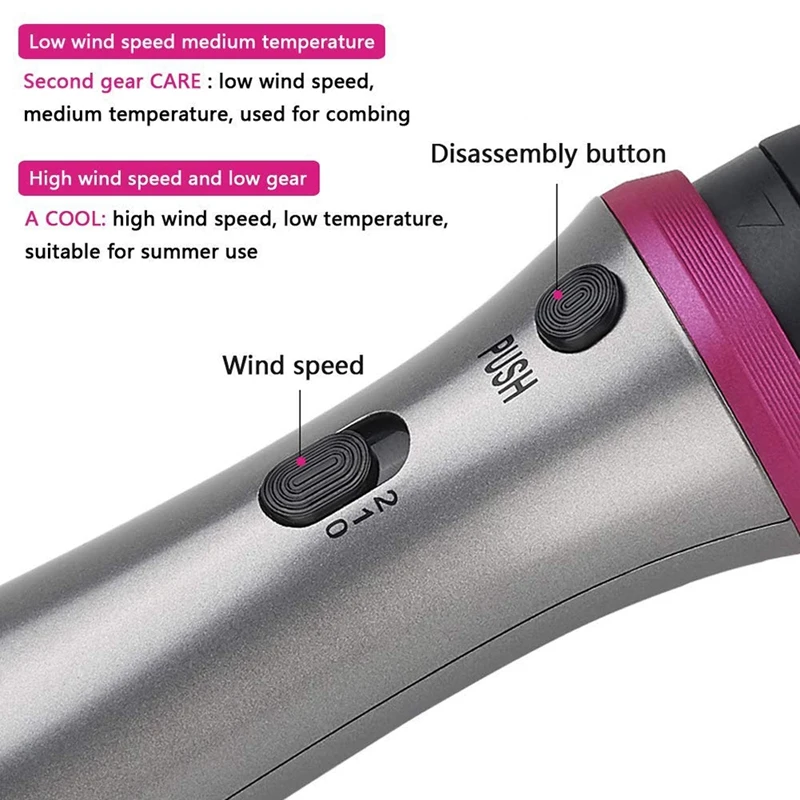 2 скорости ветра: Первая передача, высокоскоростной холодный воздух подходит для летнего использования. Вторая передача, низкая скорость средней температуры, подходит для расчесывания и укладки