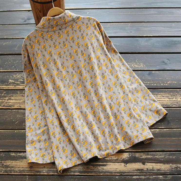 2019 Осень Зима Повседневная Женская рубашка с цветочным принтом черепаха шеи базовый с длинным рукавом женская модная Базовая Блузка YoYiKamomo