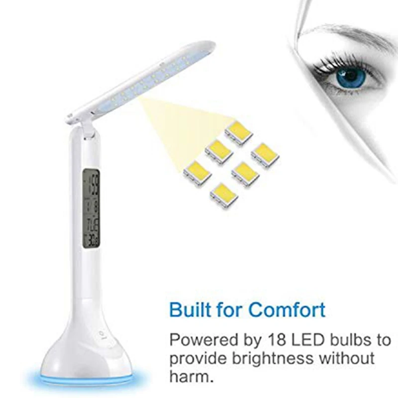 Led Desk Lamp, Eye-Caring And Dimmable Table Light, Office Lamp, Timer, Alarm Clock, Electronic Calendar, Birthday Reminder, Col