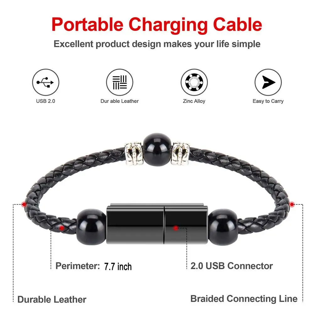 【USB размер браслета 】 длина 8,6 дюйма. Этот размер подходит для людей с окружностью запястья менее 7,3 дюймов. Перед оформлением заказа обязательно измерьте обхват запястья. Во избежание неудобства из-за неправильного размера. 【Cool & Портативная зарядка 】зарядный браслет легкий и удобный в носке, Черная Плетеная натуральная кожа Водонепроницаемая, Мягкая прочная и защищает Внутренний провод и продлевает срок его службы. Он имеет крутой вид унисекс и отлично сочетается с любой одеждой. 【Креативный браслет с зарядным устройством его можно не только носить на запястье в качестве изысканного браслета, но и использовать как брелок для ключей или как украшение, висящее на сумке. В случае аварийной ситуации этот продукт может использоваться в качестве запасного зарядного кабеля. Зарядный браслет является редким креативным подарком из-за его стильной укладки и быстрой зарядки. 【 2 шт. для iphone 】этот кабель для зарядки браслета совместим с iphone X/8/8 plus/7/7 Plus, iphone 6/6 S/6 Plus/6 S Plus, iphone 5/5S/SE, iPad 2 3 4 mini/iPod и многое другое. 【 Короткий зарядный кабель 2в1 поддерживает одновременную зарядку и передачу данных. Со стандартным интерфейсом USB 2,0 и позолоченными соединениями может предложить отличную электропроводность и сверхбыструю скорость передачи данных до 480 Мбит/с.