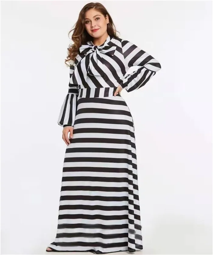 Новый стиль африканская женская одежда Дашики классический принт эластичная ткань в полоску с длинным рукавом длинное платье размера плюс L до 5XL