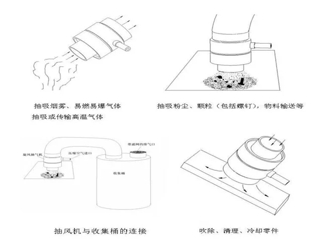 Всасывающая сторона пневматического конвейера обеспечивает сильный вакуум., За исключением транспортировки твердых материалов, удаления дымового газа для небольших участков, также подходит удаление пыли в местных районах., например, вдыхание дыма во время сварки и т. д. Несколько пневматических конвейеров последовательно, материал можно транспортировать дальше., выше.
