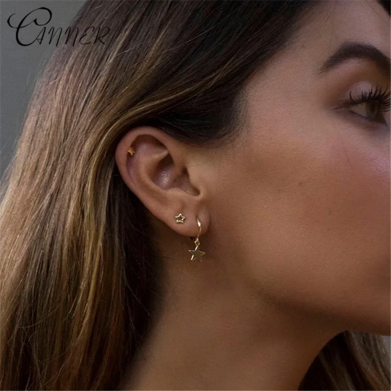 Женские серьги-гвоздики с пятиконечной звездой CANNER, простые золотые серьги звездочки, модные ювелирные изделия из стерлингового серебра 925 пробы
