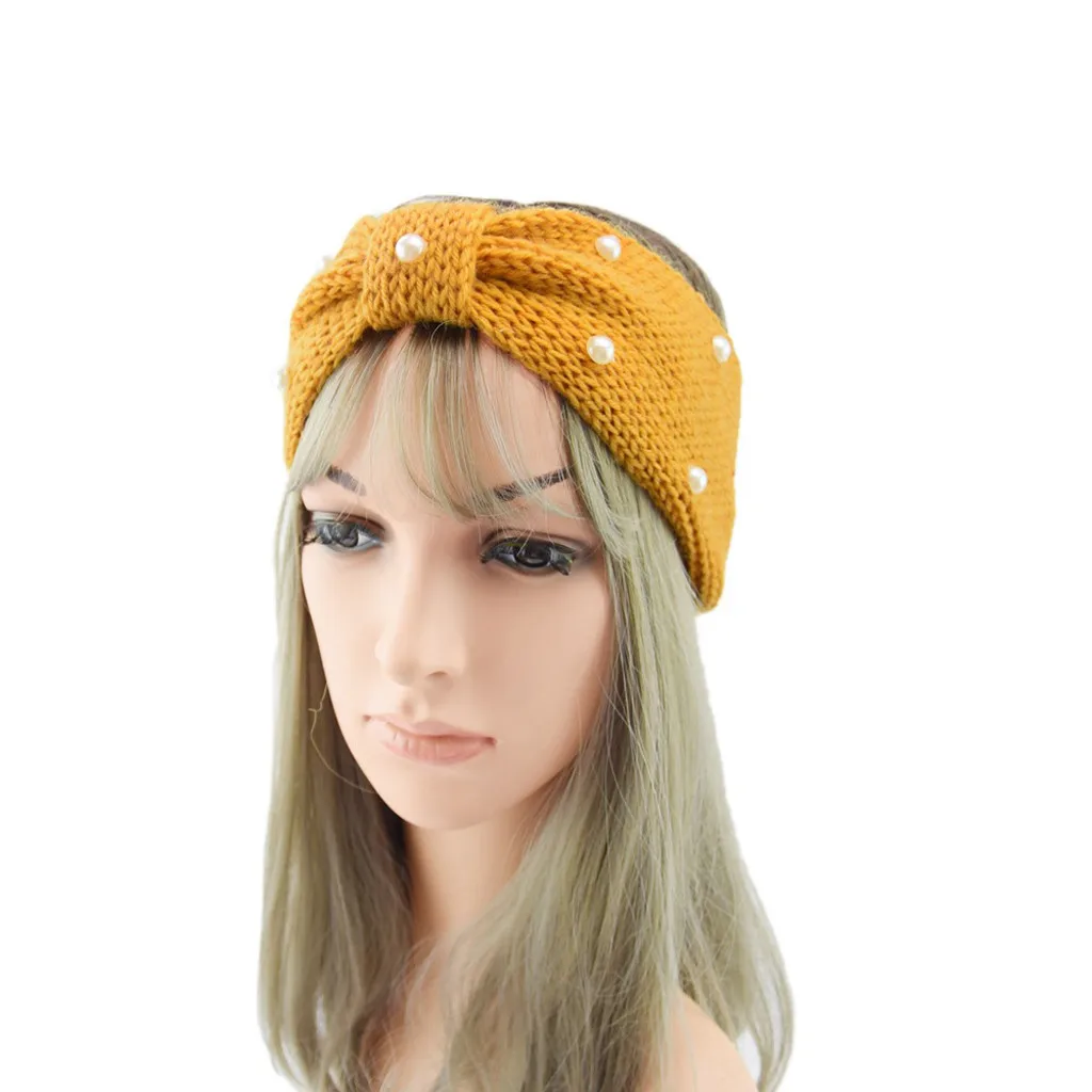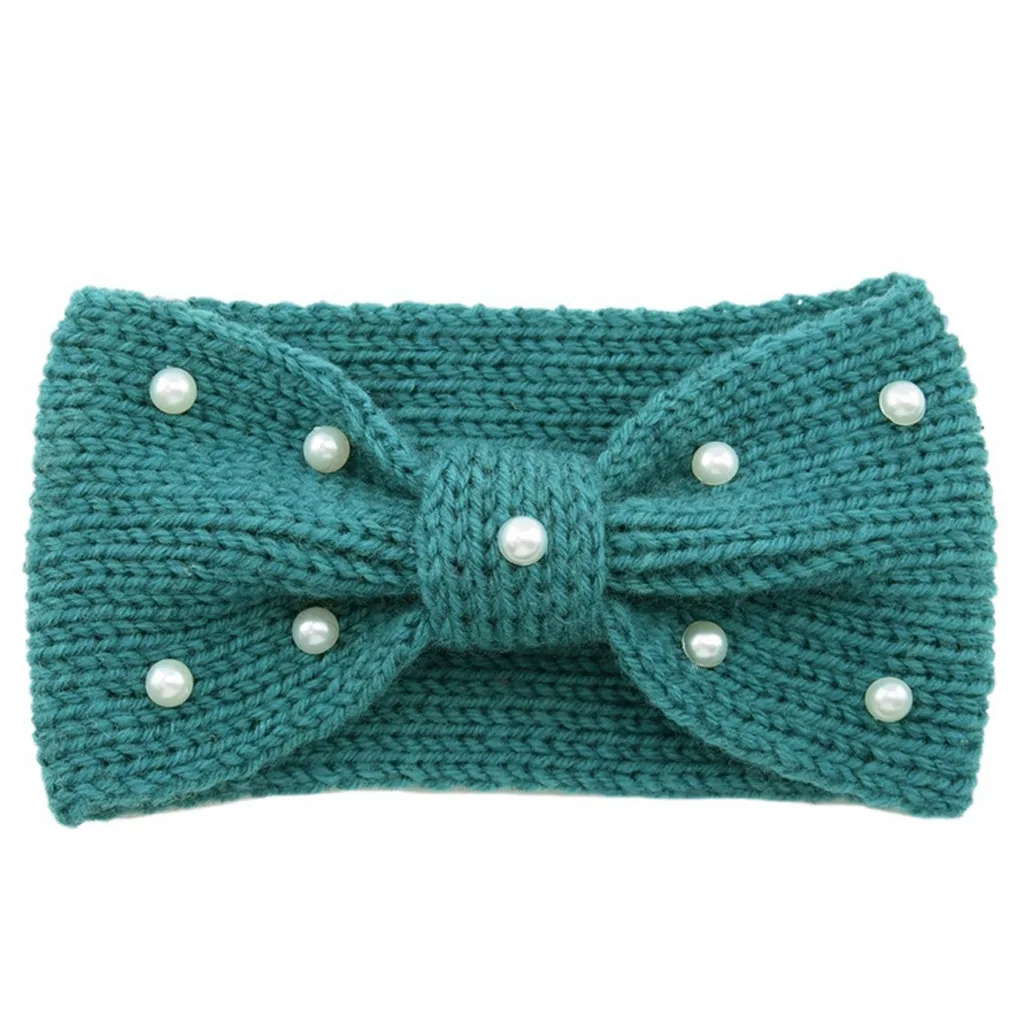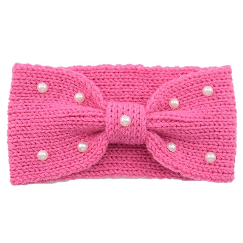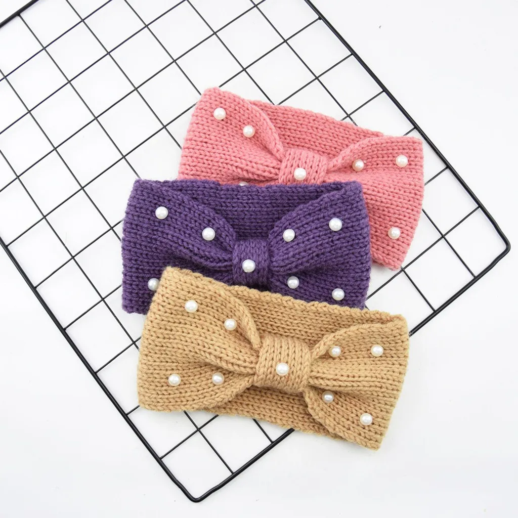 Модная женская теплая вязаная повязка на руку с жемчужинами, милая повязка для волос для девочек