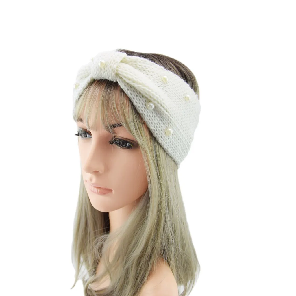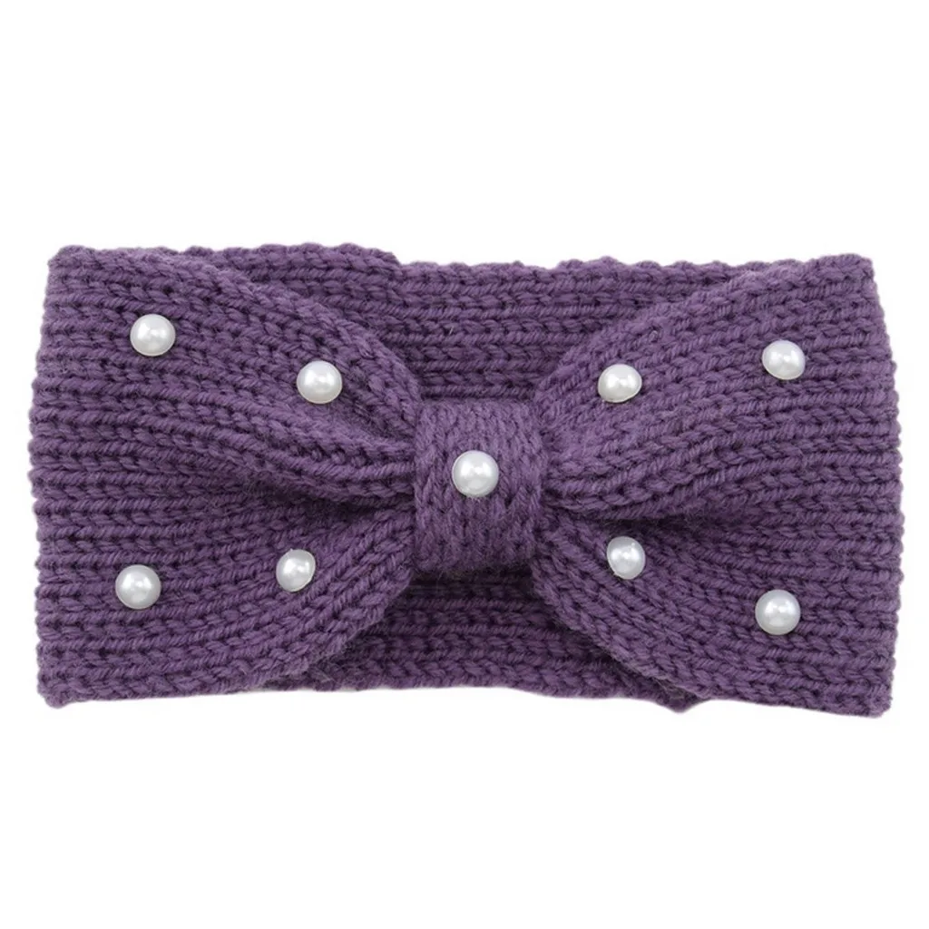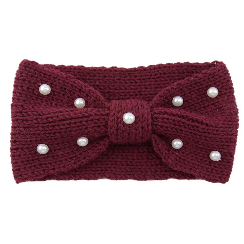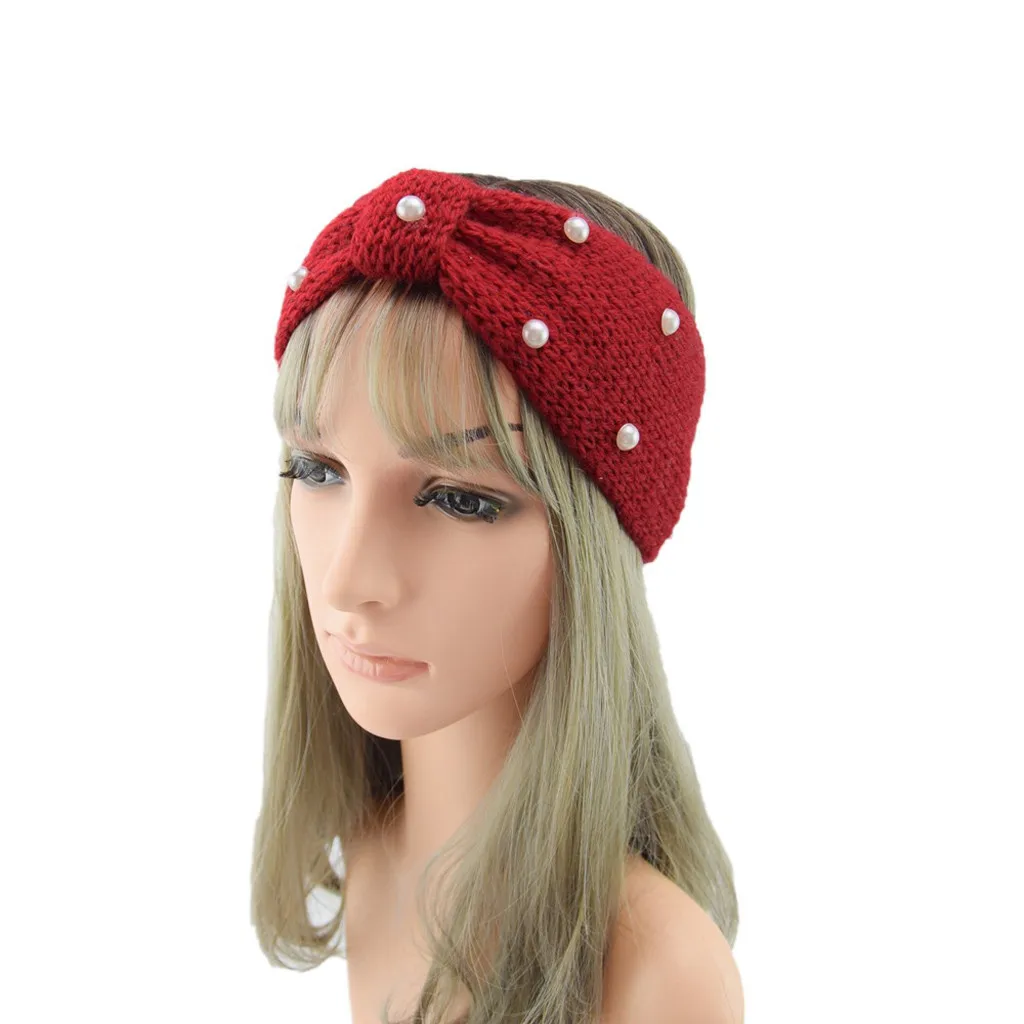 Модная женская теплая вязаная повязка на руку с жемчужинами, милая повязка для волос для девочек