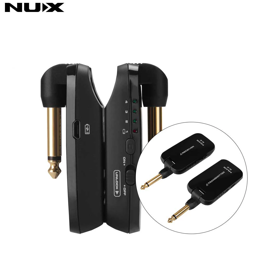 НУКС B2 B-2 гитары Беспроводной Системы 2,4 ГГц Перезаряжаемые 4 Каналы Беспроводной гитарный аудио передатчик и приемник