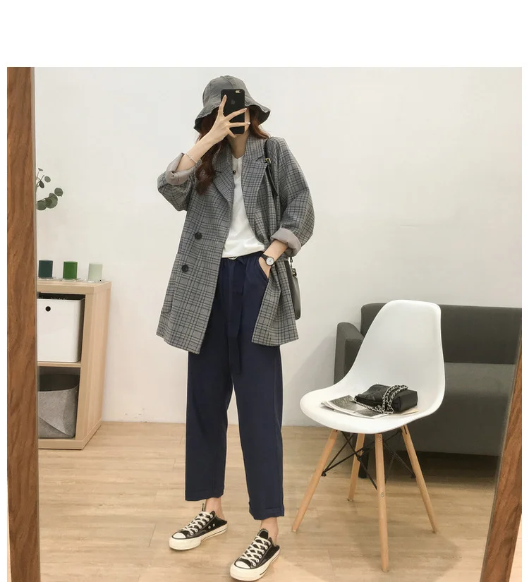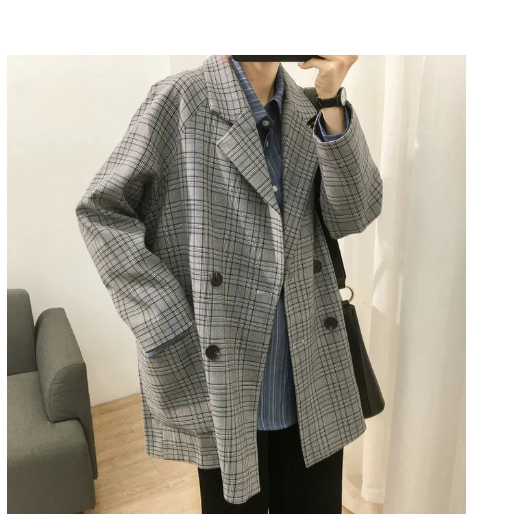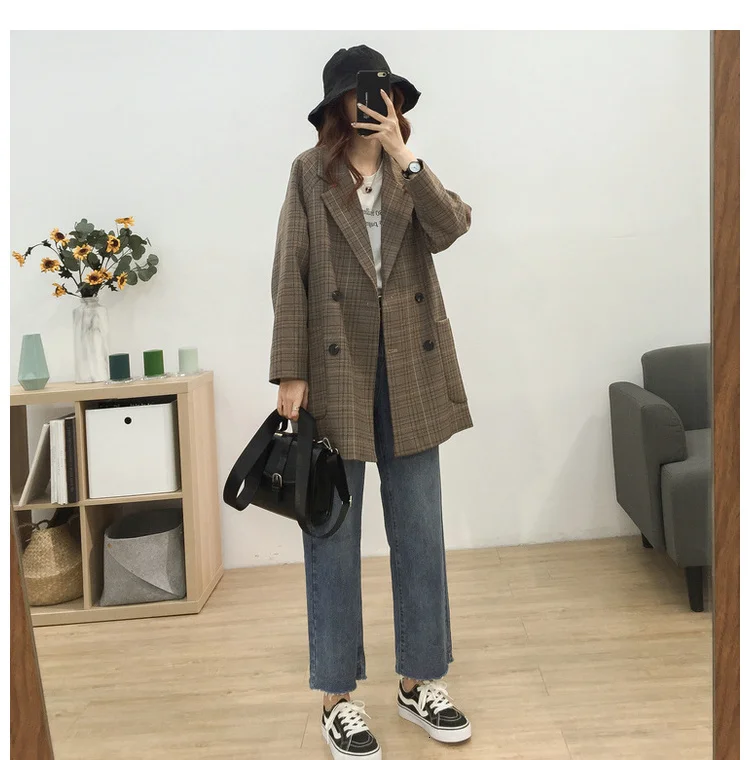 Real price ~ denim suit jacket female new style splicing design niche loose Korean version of long-sleeve | Женская одежда