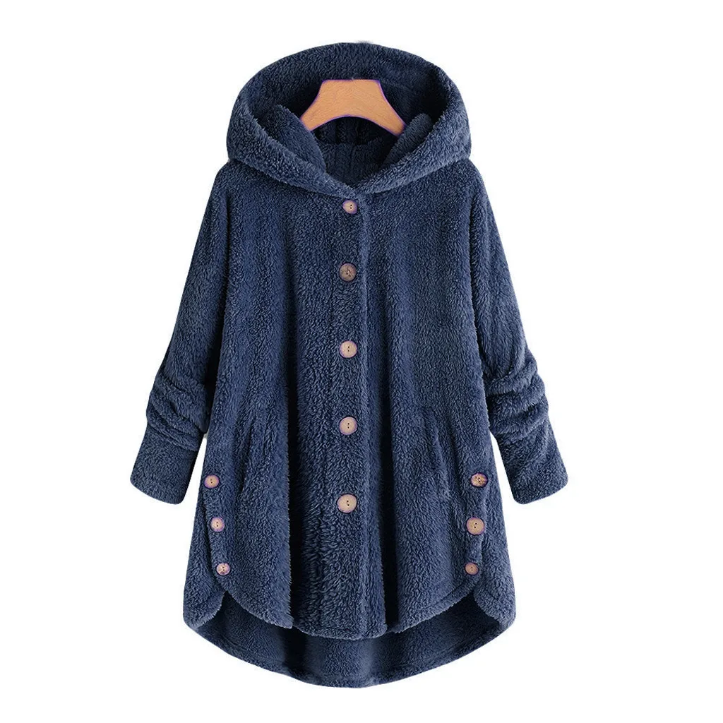Мода женщин Кнопка пальто пушистый хвост Топы с капюшоном пуловер Свободный свитер блузка