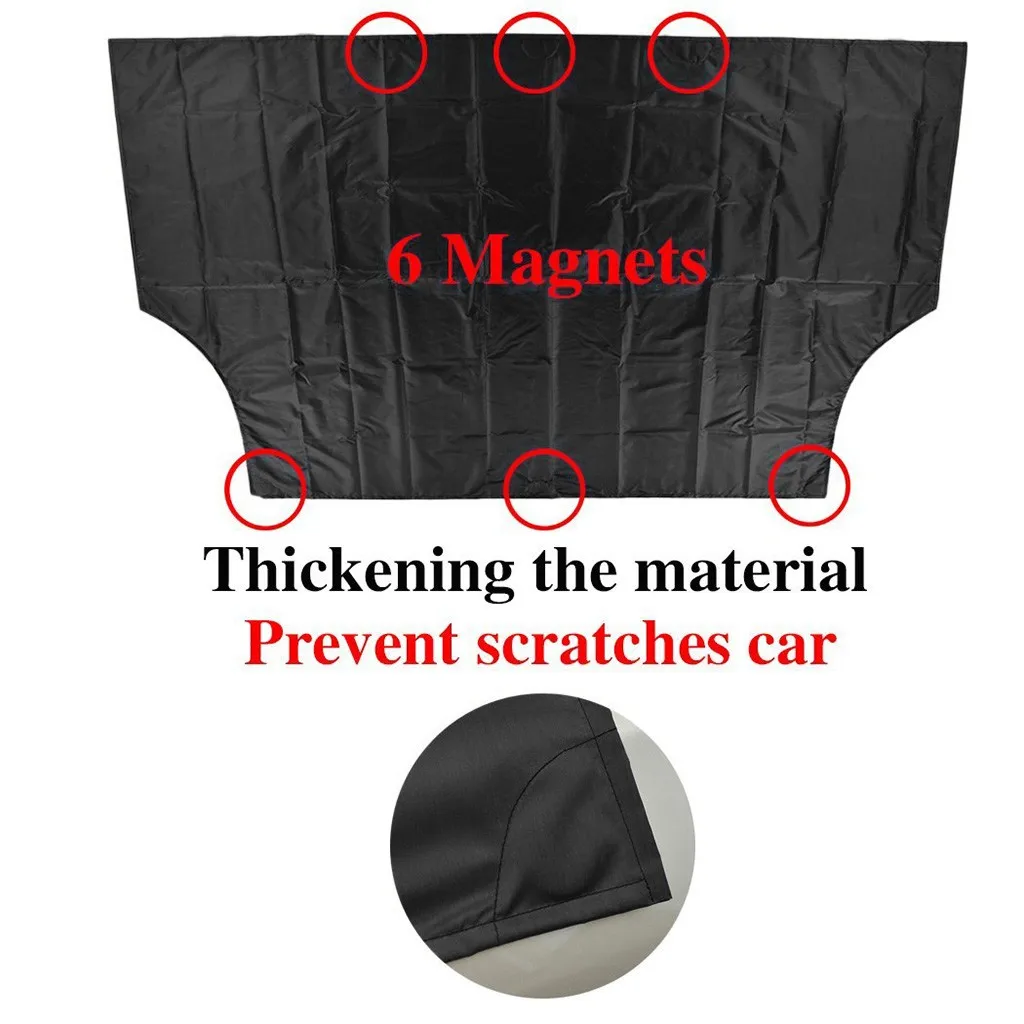 - 6 powerful magnets on the top side to keep the exterior windshield snow cover in place even in windy days, and the two windproof straps on each side to help attach this cover firmly. Even the strongest winds are no match for this windshield snow covers magnetic grip!