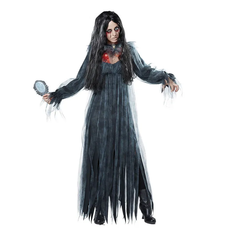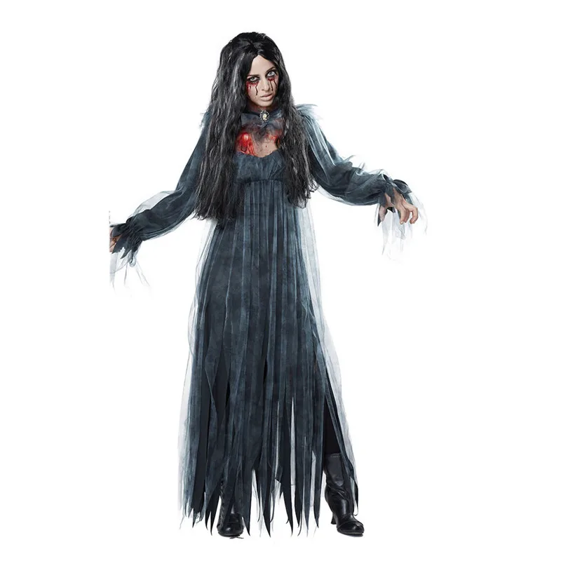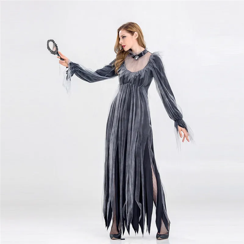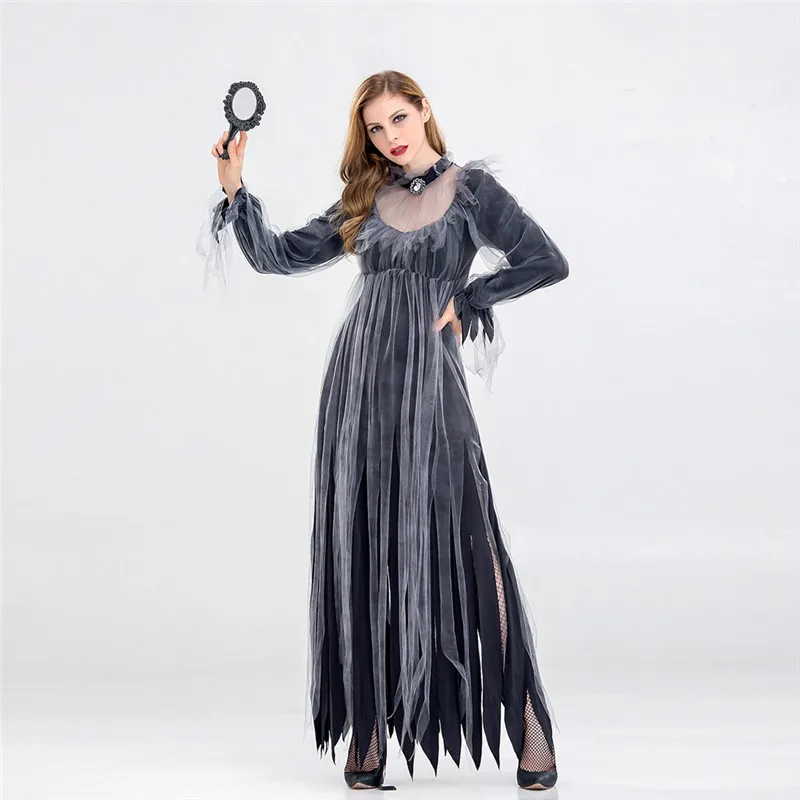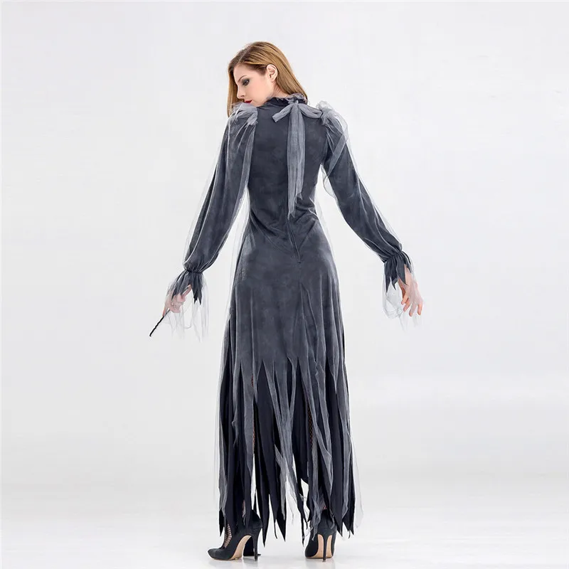 Женский карнавальный костюм на Хэллоуин, винтажное платье макси с длинным рукавом ведьмы